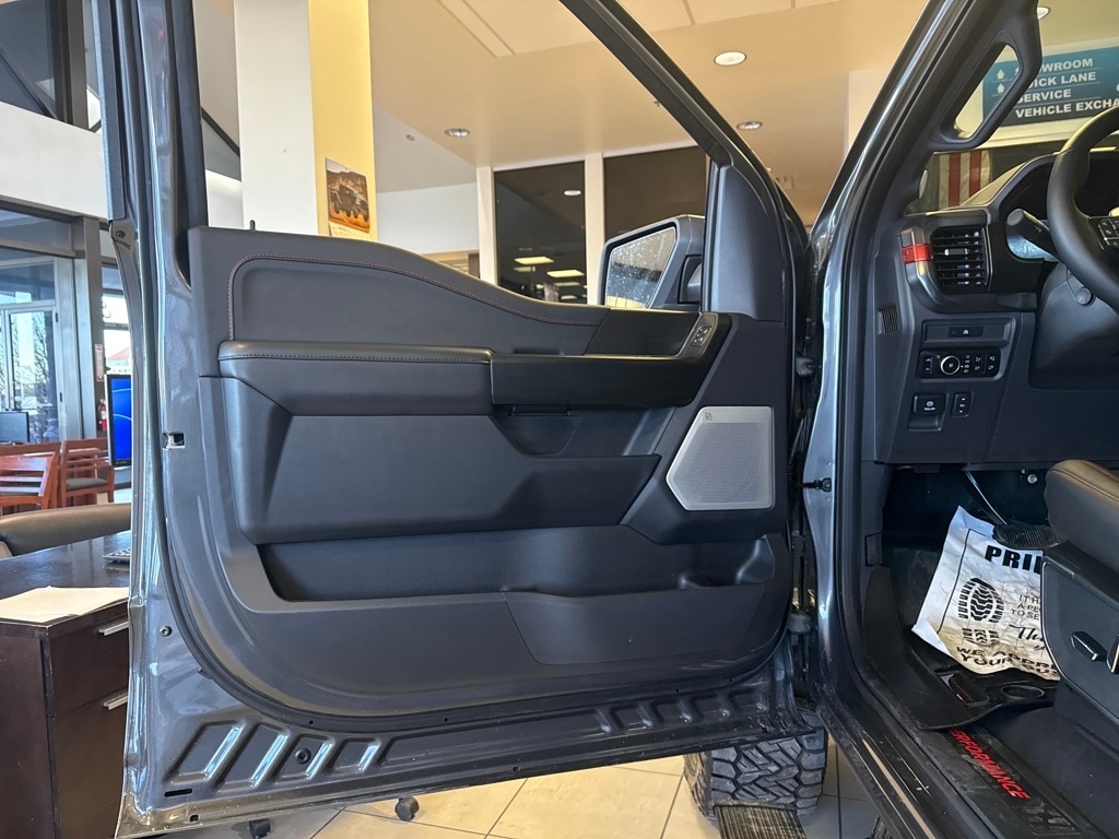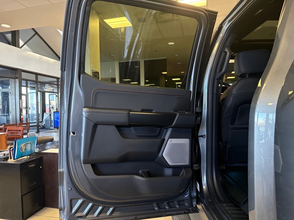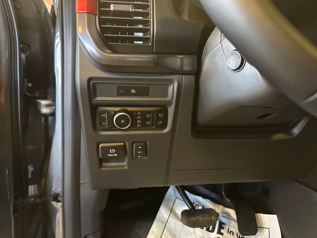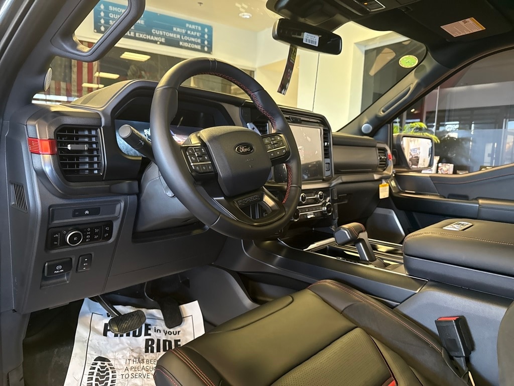 TWIN PANEL MOONROOF, TOUGH BED SPRAY-IN BEDLINER, TRANSMISSION: ELECTRONIC 10-SPEED AUTOMATIC SelectShift w/paddle shifters and terrain management modes: normal, sport, tow-haul, slippery, rock crawl, off-road and baja (STD). Ford Raptor with Carbonized Gray exterior and Black interior features a V6 Cylinder Engine with 450 HP at 5250 RPM*.