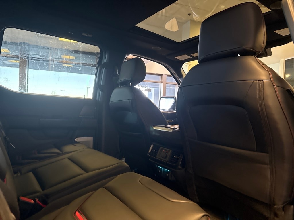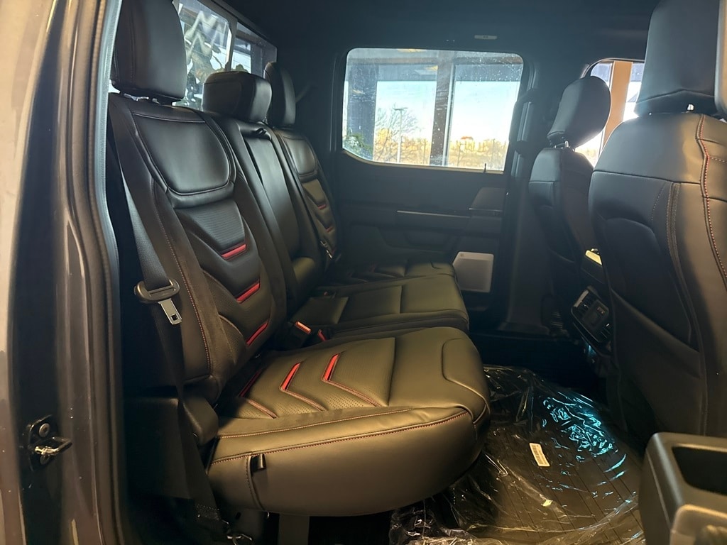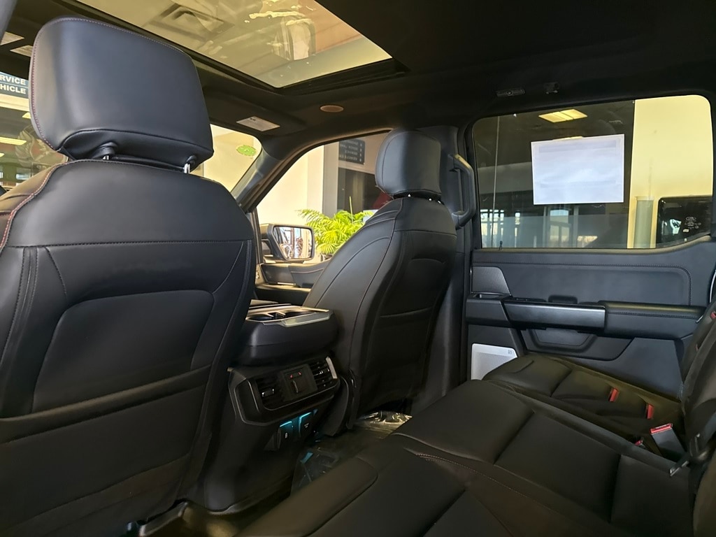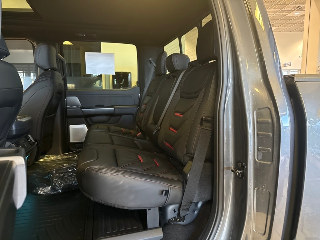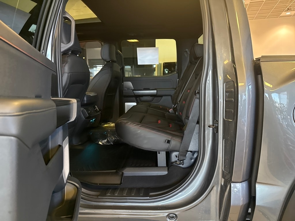 TWIN PANEL MOONROOF, TOUGH BED SPRAY-IN BEDLINER, TRANSMISSION: ELECTRONIC 10-SPEED AUTOMATIC SelectShift w/paddle shifters and terrain management modes: normal, sport, tow-haul, slippery, rock crawl, off-road and baja (STD). Ford Raptor with Carbonized Gray exterior and Black interior features a V6 Cylinder Engine with 450 HP at 5250 RPM*.