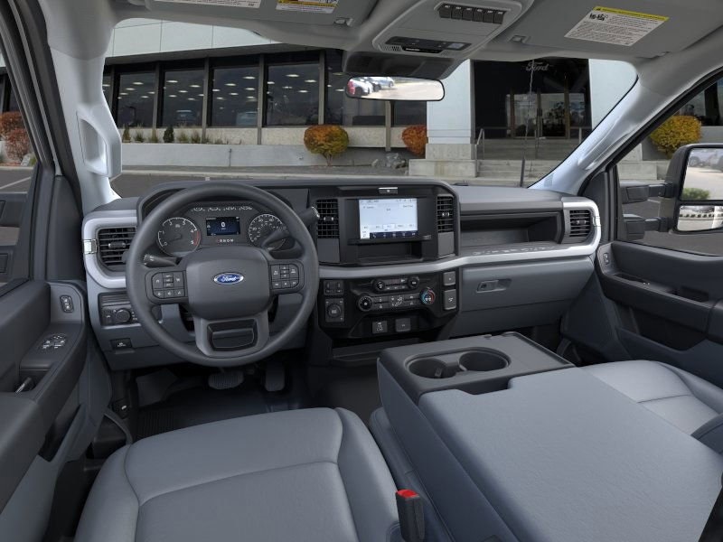 Ford Connectivity Package (1-Year Included), GVWR: 14,000 lb Payload Package, Internet access capable: 5G Modem - Ford Connectivity Package, Order Code 640A, Snow Plow Prep Package, 4WD, 17" Argent Painted Steel Wheels, 190 Amp Alternator, 4 Speakers, 4-Ton Hydraulic Jack, 4-Wheel Disc Brakes, 410 Amp Dual Alternators, ABS brakes, Air Conditioning, AM/FM radio, AM/FM Stereo w/MP3 Player, Automated Emergency Braking (AEB) Removal, Brake assist, Center High-Mounted Stop Lamp (CHMSL), Compass, Delay-off headlights, Dual 68 AH/65 AGM Battery, Dual front impact airbags, Dual front side impact airbags, Dual rear wheels, Emergency communication system: SYNC 4 911 Assist, Engine Block Heater, Front anti-roll bar, Front Center Armrest w/Storage, Front License Plate Bracket, Front reading lights, Front Wheel Well Liner (Pre-Installed), Fully automatic headlights, HD Vinyl 40/20/40 Split Bench Seat, Heated door mirrors, Illuminated entry, Low tire pressure warning, Outside temperature display, Overhead airbag, Overhead console, Panic alarm, Passenger cancellable airbag, Passenger vanity mirror, Power door mirrors, Power steering, Power windows, Pro Power Onboard - 2kW, Rapid-Heat Supplemental Cab Heater, Rear anti-roll bar, Rear View Camera & Prep Kit, Remote keyless entry, Security system, Speed control, Steering wheel mounted audio controls, SYNC 4 Communication & Entertainment System, Tachometer, Telescoping steering wheel, Tilt steering wheel, Traction control, Trailer Brake Controller, Trip computer, Turn signal indicator mirrors, and Variably intermittent wipers. Price includes dealer added accessories.