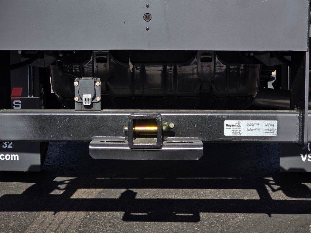 This Ford F-550 chassis is professionally outfitted with a robust 12-foot CM/Rugby platform flatbed, providing a versatile and expansive work surface for hauling equipment and materials. The installation includes a comprehensive ICC-compliant rear bumper for safety and a universal 2-1/2" receiver hitch for substantial towing capacity. Functionality is further enhanced with the integration of a backup camera system. The upfit package covers all necessary mounting hardware and a thorough fuel system check, ensuring the vehicle is fully integrated and ready for demanding commercial use.