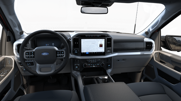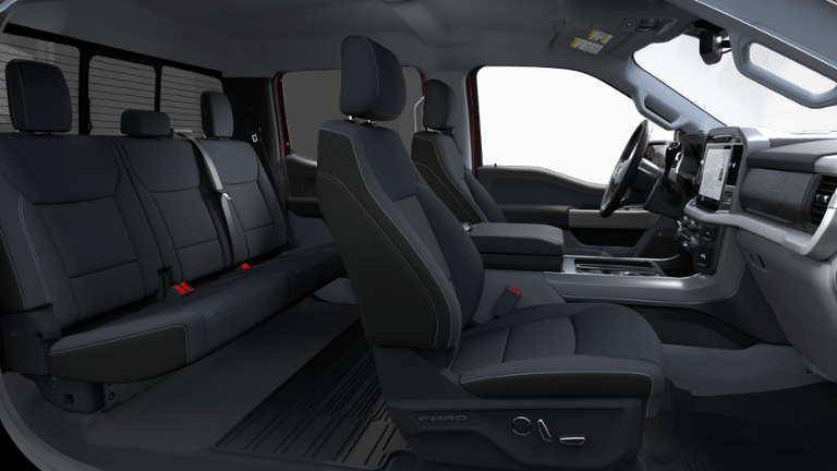EQUIPMENT GROUP 303A HIGH Power-Adjustable Pedals, Adaptive Cruise Control w/Stop & Go, lane centering, Speed Sign Recognition, Intelligent Access w/Push Button Start, approach detection, Wheels: 20 Chrome-Like PVD, Tires: 275/60R20 BSW Automatic Transmission, Ford BlueCruise Equipped (90-Day Trial), See ford.com/bluecruise for version details, Radio: B&O Sound System by Bang & Olufsen, HD Radio and 8 speakers including subwoofer, Mobile Office Package, Partitioned Lockable Rear Storage, Console Worksurface, 400W Cab & Bed Outlets, Power-Sliding Rear Window, Remote Start System w/Remote Tailgate Release, Heated Front Seats, Power Glass Heated Sideview Mirrors, manual folding, turn signals, high-intensity LED security approach lamps, LED sideview mirror spotlights and chrome skull caps, Auto-Dimming Rearview, BED UTILITY PACKAGE Tailgate Step w/Tailgate Work Surface, LED Box Lighting, 4 Pickup Box Tie-Down Plates, TOUGH BED SPRAY-IN BEDLINER, MAX TOW ELECTRONIC LOCKING W/3.55 AXLE RATIO, TRAY STYLE FLOOR LINER W/CARPET MATS, TRANSMISSION: ELECTRONIC 10-SPEED AUTOMATIC SelectShift w/progressive range select and selectable drive modes: normal, ECO, sport, tow/haul, slippery, deep snow/sand and mud/rut (STD). Ford XLT with Rapid Red Metallic Tinted Clearcoat exterior and Medium Dark Slate interior features a 8 Cylinder Engine with 400 HP at 6000 RPM*.
