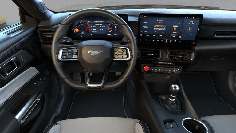 GT PERFORMANCE PACKAGE K-brace and accent stitched center console lid, Electric Hand-Operated Parking Brake (Drift Brake), Heavy-Duty Front Springs, Performance Raised Rear Wing, Body color, Wheels: 19 x 9 Fr/19 x 9.5 Rr Carbonized, Gray-painted aluminum, Black Painted Strut-Tower Brace, Front Towing Hooks, Ebony Black Grille, ice white front and rear pony badge, 3.73 TORSEN Limited-Slip Rear Axle Ratio, Unique Stability Control, EPAS and ABS tuning, 19 Brembo Brake System w/Performance Linings, black brake calipers w/white logo, Tire Repair Kit, Red Painted Brake Calipers w/White Logo, Upsized Rear Sway Bars, Tires: 255/40R19 Fr & 275/40R19 Rr Summer-Only, Designed to optimize driving dynamics and provide superior performance on wet and dry roads, High performance summer tires wear, EQUIPMENT GROUP 301A HIGH PACKAGE Ambient Lighting w/MyColor, Dual-Zone Electronic Automatic Temperature Control, SiriusXM w/360L & HD Radio, a three (3)-month prepaid subscription, Service is not available in Alaska and Hawaii, Note: Trial length and service availability may vary by model, model year or trim, Details: SiriusXM audio and data services each require a subscription sold separately, or as a package, by Sirius XM Radio Inc, Your SiriusXM service will automatically stop at the end of your trial unless you decide to subscribe, If you decide to continue service after your trial