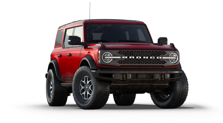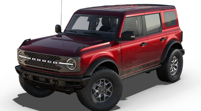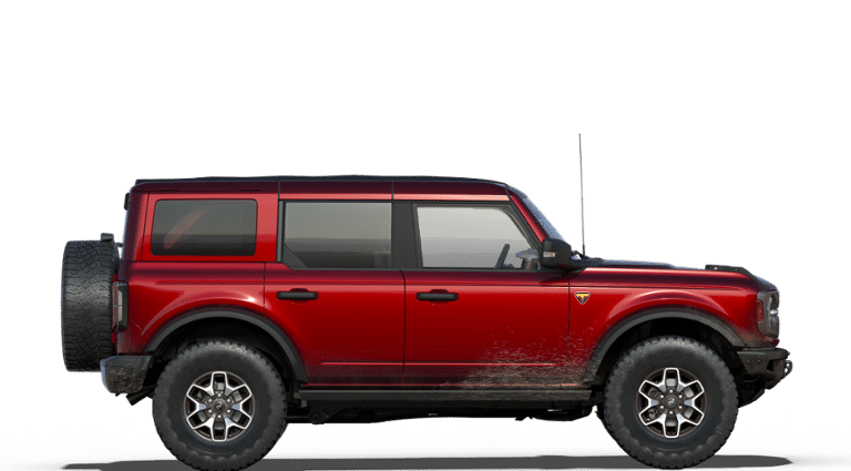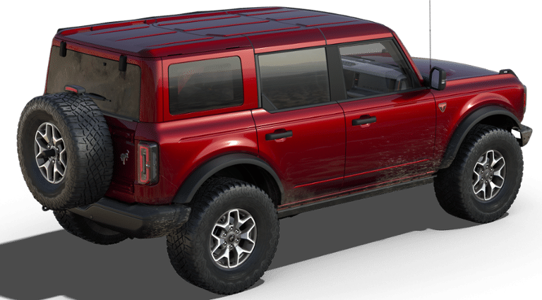 BODY COLOR-PAINTED HARD TOP Hard Top Sound Deadening Headliner, Rear-Window Defroster & Washer, ENGINE: 2.7L ECOBOOST V6 GVWR: 6,180 lbs, TRANSMISSION: 10-SPEED AUTOMATIC remote start system, trail control, trail turn assist and trail one-pedal driving, 4.46 Axle Ratio, Rear HVAC, TIRES: LT285/70R17 MUD-TERRAIN. Ford Badlands with Ruby Red Metallic Tinted Clearcoat exterior and Black Onyx interior features a V6 Cylinder Engine with 315 HP at 5500 RPM*.