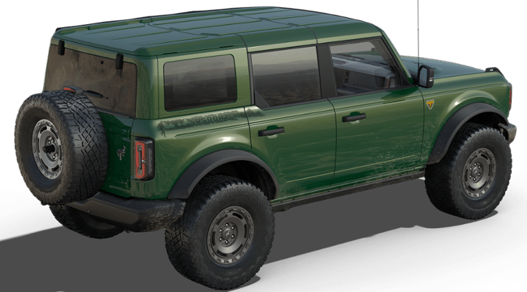 Equipment Group 334A Lux Package (2-Door Intelligent Access w/Lock/Unlock, 360-Degree Camera, Adaptive Cruise Control, Ambient Footwell Lighting, Connected Navigation, Dr & Pass Illuminated Sliding Visor Vanity Mirrors, Dual Smart Charging USB Ports, Dual-Zone Electronic Automatic Temperature Control, Evasive Steering Assist, Front Parking Sensors, Front Row Heated Seats, Information on Demand Panel, Power Outlet - Back Side of Center Floor Console, Radio: B&O Sound System by Bang & Olufsen, Rear Parking Sensors, Sideview Mirrors, and Universal Garage Door Opener), Sasquatch Graphics Package, Sasquatch Package (High Clearance Fender Flares, High Clearance Suspension, Position-Sensitive Bilstein Shock Absorbers, and Wheels: 17" Carbonized Gray Painted Aluminum), 4-Wheel Disc Brakes, 7 Speakers, ABS brakes, Air Conditioning, Alloy wheels, AM/FM radio: SiriusXM with 360L, AM/FM Stereo, Auto High-Beam Headlamps, Auto High-beam Headlights, Auto-dimming Rear-View mirror, BLIS Blind Spot Information System, Body Color-Painted Hard Top, Brake assist, Compass, Delay-off headlights, Door Storage Bags, Driver door bin, Driver vanity mirror, Dual front impact airbags, Dual front side impact airbags, Electronic Stability Control, Emergency communication system: 911 Assist, Exterior Parking Camera Rear, Front anti-roll bar, Front Bucket Seats, Front Center Armrest, Front fog lights, Front License Plate Bracket, Front reading lights, Front wheel independent suspension, Fully automatic headlights, Hard Top Sound Deadening Headliner, Heated door mirrors, Heated front seats, Heated steering wheel, HOSS 3.0 w/FOX Internal Bypass Dampers, Illuminated entry, Integrated roll-over protection, Internet access capable: FordPass Connect, Lane-Keeping System, Leather Shift Knob, Low tire pressure warning, Marine Grade Vinyl Heated Bucket Seats, Occupant sensing airbag, Outside temperature display, Overhead airbag, Overhead console, Panic alarm, Passenger door bin, Passenger vanity mirror, Power door mirrors, Power steering, Power windows, Pre-Collision Assist w/Automatic Emergency Braking, Radio data system, Rear-View Camera, Rear-Window Defroster & Washer, Remote keyless entry, Security system, SiriusXM w/360L, Speed control, Split folding rear seat, Steering wheel mounted audio controls, SYNC 4, Tachometer, Telescoping steering wheel, Tilt steering wheel, Traction control, Trip computer, Variably intermittent wipers, Voltmeter, and Wheels: 17" Carbonized Gray-Painted Aluminum. Price includes: $1000 - Bonus Customer Cash. Exp. 01/05/2026 $1000 - Final Days Mega Bonus Cash. Exp. 01/02/2026 $1000 - Retail Bonus Cash. Exp. 01/05/2026