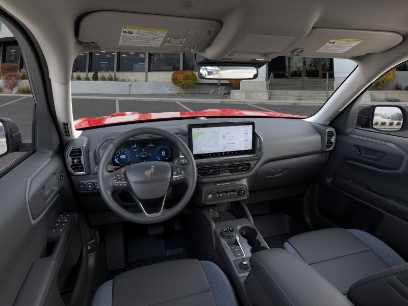 OUTER BANKS TECH PACKAGE+ Ford Co-Pilot360 Assist 2.0, Reverse Brake Assist, Front Parking Sensors, 360-Degree Camera w/Trail & Split View, power heated glass sideview mirrors w/manual fold and memory, B&O Sound System by Bang & Olufsen, 10 speakers and subwoofer, Connected Navigation, 1-year subscription, pinch-to-zoom capability, live traffic, predictive destinations and route guidance and one box search, Navigation services require SYNC 4 and Bronco Trail App (optional on select vehicles), complimentary connect service and the FordPass app (see FordPass terms for details), Customer receives a complimentary 1-year subscription of navigation services when an eligible vehicle is added to a members FordPass account, Trial period begins on the new vehicle warranty start date, At the end of, FRONT & REAR FLOOR LINERS W/O CARPET MATS. Ford Outer Banks with Ruby Red Metallic Tinted Clearcoat exterior and Platinum Blue interior features a 3 Cylinder Engine with 181 HP at 6000 RPM*.