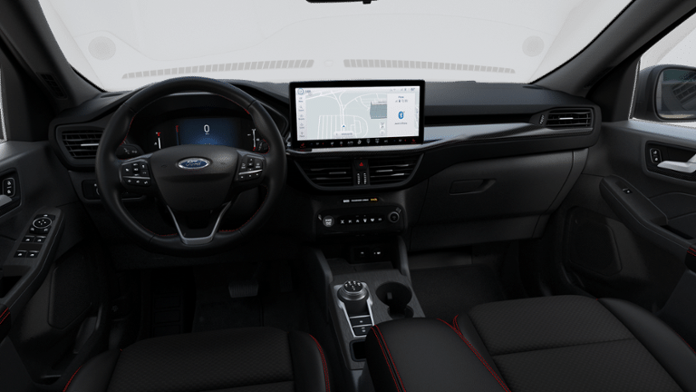 PANORAMIC VISTA ROOF power open/close w/power shade, Black Roof-Rack Side Rails, COLD WEATHER PACKAGE Heated Front Row Seats, Heated Sideview Mirrors, Remote Starter System, Heated Steering Wheel, TECH PACK #1 SYNC 4 w/Enhanced Voice Recognition, 13.2 LCD capacitive touch-screen w/swipe capability, wireless phone connection, cloud connected, AppLink w/app catalog, 911 Assist, wireless Apple CarPlay? and Android Auto?, digital owners manual, Rear View Camera, Ford Co-Pilot360 Assist+, Connected Navigation, 1 year of connectivity, pinch-to-zoom capability, live traffic, predictive destinations and route guidance, Evasive Steering Assist, Predictive Speed Assist, Intersection Assist, Rear Parking Sensor, Adaptive Cruise Control w/Stop-and-Go, lane centering assist, MINI SPARE WHEEL T155/70D17 spare tire and jack. Ford ST-Line with Agate Black exterior and Ebony w/Red Stitching interior features a 3 Cylinder Engine with 180 HP at 6000 RPM*.