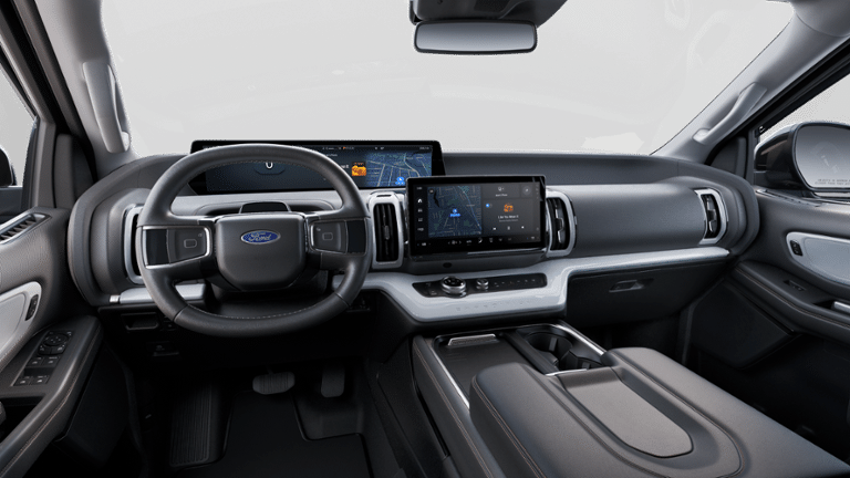 EQUIPMENT GROUP 202A HIGH PACKAGE Ford Split Gate, power upper liftgate and power lower tailgate, Wheels: 20 Carbonized Gray Bright Machined Aluminum, 360-Degree Zone Lighting, 110V/400W AC Power Outlet, 1 console outlet and one cargo area outlet, BlueCruise Equipped, 90-day trial, Not available to military sales, Universal Garage Door Opener, Power Panoramic Vista Roof w/Power Sunshade, Rain Sensing Wipers, Power Tilt/Telescopic Steering Wheel w/Memory, Memory Driver Seat, Tires: P275/60R20 AT, Ford Co-Pilot360 Active 2.0, Driver State Detection, Intersection Assist, pre-collision assist w/autonomous emergency braking, pedestrian detection, forward collision warning and dynamic brake support, Front Side Laminated Glass, Wireless Charging Pad, Located in media hub, 2nd Row Power-Folding. Ford Active with Glacier Gray Metallic Tri-Coat exterior and Dark Gray interior features a V6 Cylinder Engine with 400 HP at 5200 RPM*.