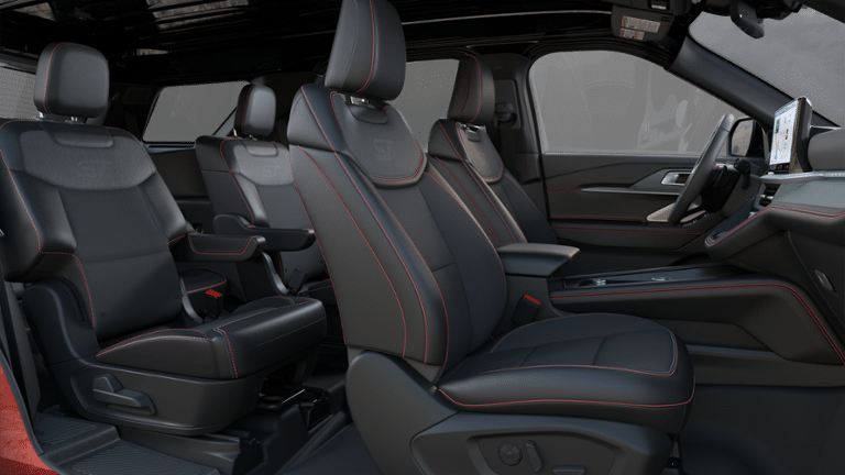 TRANSMISSION: 10-SPEED AUTOMATIC SelectShift capability w/paddle shifters (STD). Ford ST with Rapid Red Metallic Tinted Clearcoat exterior and Onyx interior features a V6 Cylinder Engine with 400 HP at 5500 RPM*.