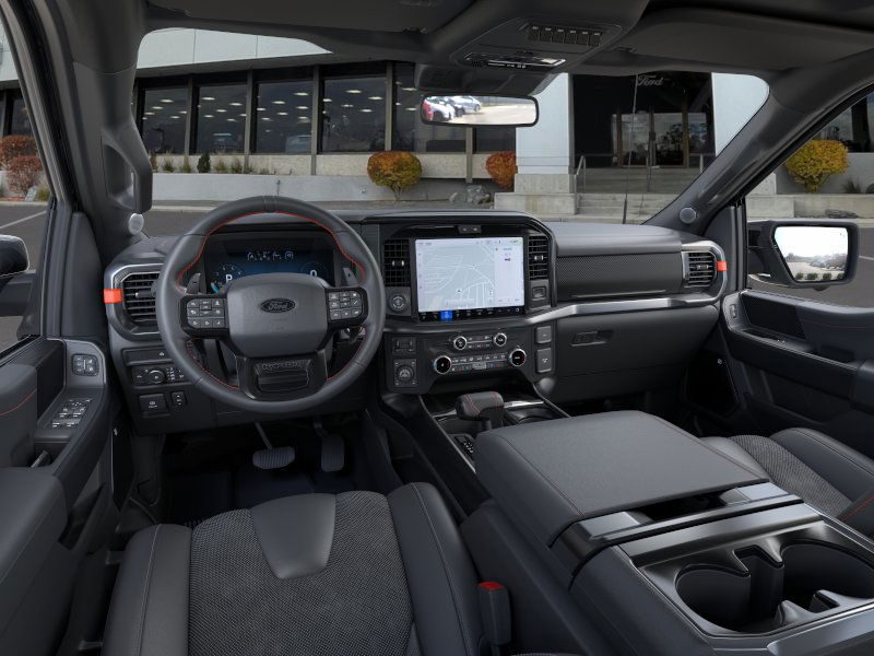 EQUIPMENT GROUP 802A RAPTOR 37 Dual Valve Shocks, Wheels: Raptor 37 Unique 17 Cast Aluminum, Bead lock capable, Carbon Fiber Interior Appliques, Modular Front Bumper, Tires: 37x12.5R17 BSW All-Terrain, GVWR: 7,400 lbs, TWIN PANEL MOONROOF, TOUGH BED SPRAY-IN BEDLINER, TRANSMISSION: ELECTRONIC 10-SPEED AUTOMATIC SelectShift w/paddle shifters and terrain management modes: normal, sport, tow-haul, slippery, rock crawl, off-road and baja (STD). Ford Raptor with Agate Black exterior and Black interior features a V6 Cylinder Engine with 450 HP at 5250 RPM*.