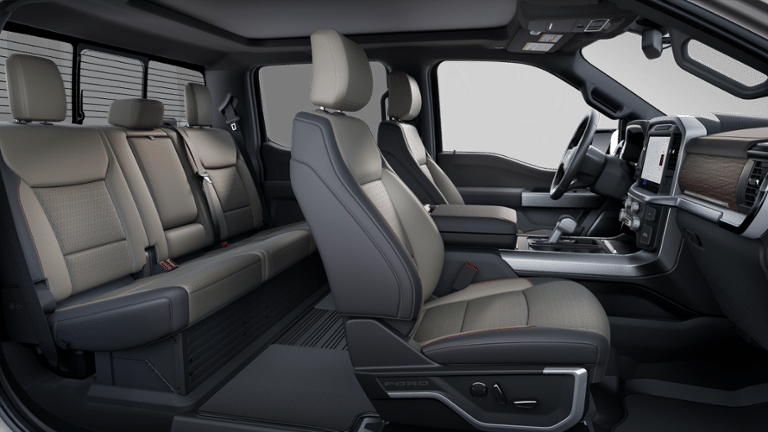 EQUIPMENT GROUP 502A HIGH Ambient Lighting - Ice Blue Color Only, Wheels: 20 Chrome-Like PVD, Radio: B&O Unleashed Sound System by Bang & Olufsen, HD Radio and 14 speakers including subwoofer, 2nd Row Heated Seats, Mobile Office Package, Wireless Charging, Partitioned Lockable Rear Storage, Console Worksurface, 6 Extended Angular Bright Anodized Step Bar, Power-Sliding Rear Window, Heads-Up Display, Illuminated Driver & Passenger Visors, covered mirrors, Tires: 275/60R20 All-Terrain, TWIN PANEL MOONROOF, BLUECRUISE EQUIPPED (1-YEAR PLAN) See ford.com/bluecruise for version details, Note: Select option to purchase BlueCruise hardware and 1 year of BlueCruise access at time of vehicle order, Without selecting this option, vehicle will never be capable of BlueCruise functionality, After this initial duration, customers need to purchase a subscription to continue using BlueCruise, See subscription options and pricing on ford.com/bluecruise, TRANSMISSION: ELECTRONIC 10-SPEED AUTOMATIC SelectShift w/progressive range select and selectable drive modes: normal, ECO, sport, tow/haul, slippery, deep snow/sand and mud/rut (STD). Ford LARIAT with Star White Metallic Tri-Coat exterior and Smoked Truffle interior features a 8 Cylinder Engine with 400 HP at 6000 RPM*.
