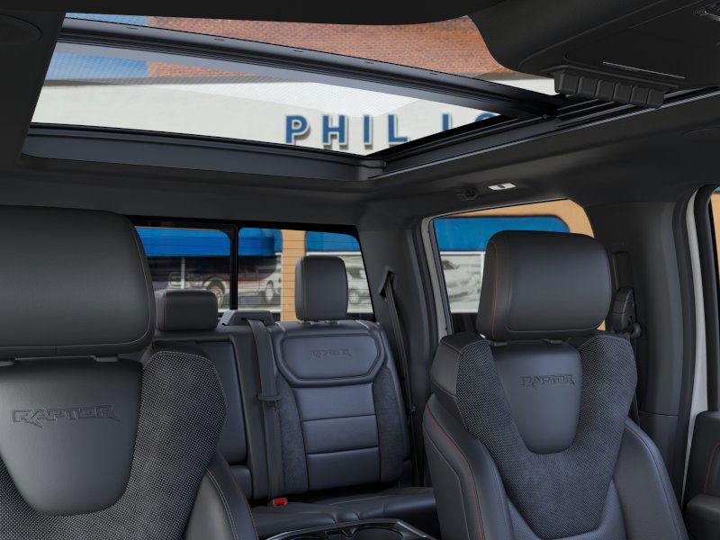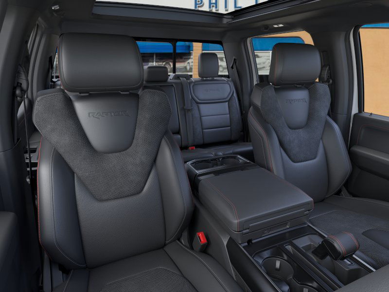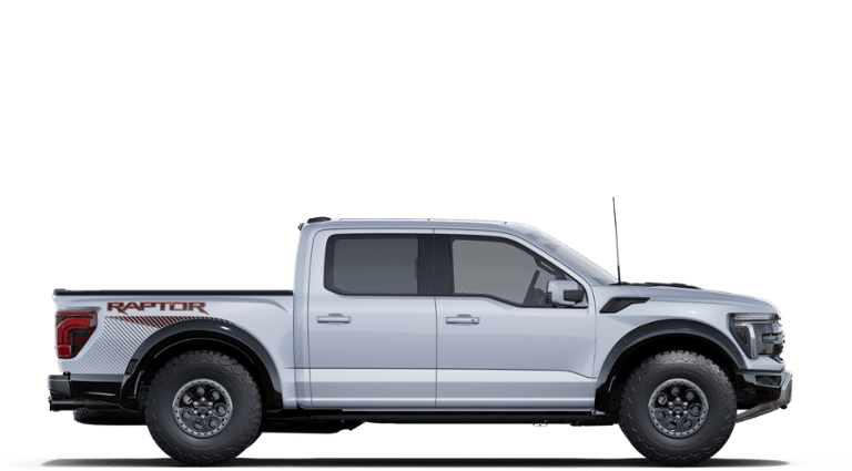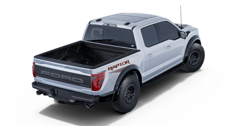 EQUIPMENT GROUP 802A RAPTOR 37 Dual Valve Shocks, Wheels: Raptor 37 Unique 17 Cast Aluminum, Bead lock capable, Carbon Fiber Interior Appliques, Modular Front Bumper, Tires: 37x12.5R17 BSW All-Terrain, GVWR: 7,400 lbs, TWIN PANEL MOONROOF, TOUGH BED SPRAY-IN BEDLINER, TRANSMISSION: ELECTRONIC 10-SPEED AUTOMATIC SelectShift w/paddle shifters and terrain management modes: normal, sport, tow-haul, slippery, rock crawl, off-road and baja (STD). Ford Raptor with Space White exterior and Black interior features a V6 Cylinder Engine with 450 HP at 5250 RPM*.