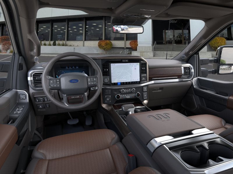 ENGINE: 3.5L POWERBOOST FULL-HYBRID V6 Pro Power Onboard 7.2KW and removes 36 gallon fuel tank, GVWR: 7,400 lbs Payload Package, Electronic Locking w/3.73 Axle Ratio, FX4 OFF-ROAD PACKAGE rock crawl mode, Off-Road Tuned Front Shock Absorbers, Skid Plates, fuel tank, transfer case and front differential, Monotube Rear Shocks, 4x4 FX4 Off-Road Bodyside Decal, Hill Descent Control, Tray Style Floor Liner, POWER TELESCOPING/GLASS/FOLDING TRAILER TOW MIRRORS heat, turn signal, memory, auto-dimming feature (drivers side) and chrome skull caps, LED Sideview Mirror Spotlights, high-intensity LED security approach lamps. Ford King Ranch with Agate Black/Marsh Gray exterior and Norias/Mesa interior features a V6 Cylinder Engine with 430 HP at 6000 RPM*.