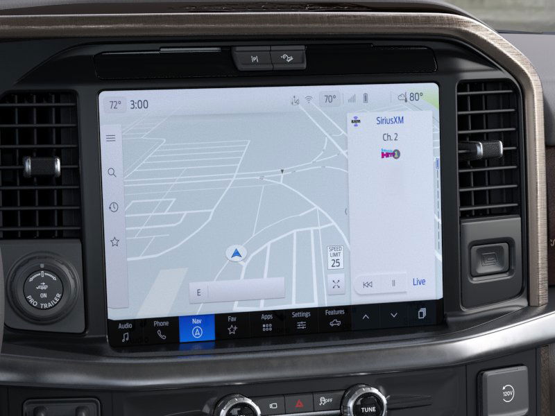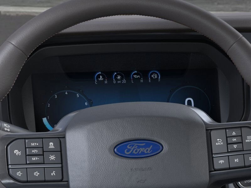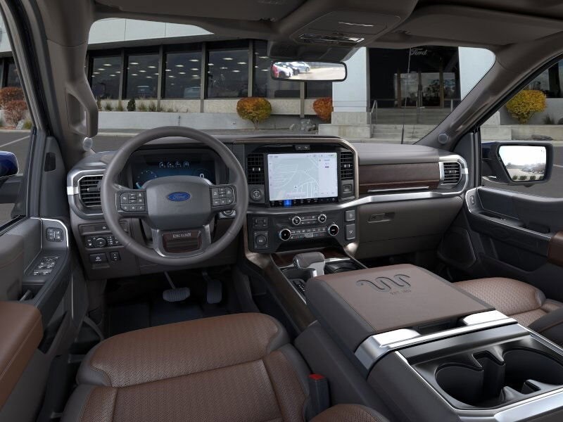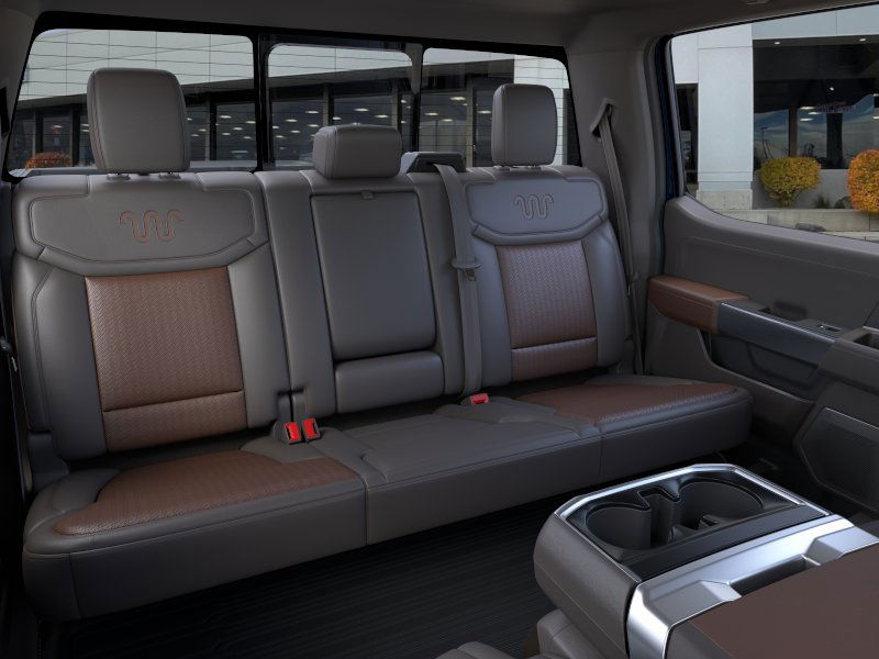 ENGINE: 3.5L POWERBOOST FULL-HYBRID V6 Pro Power Onboard 7.2KW and removes 36 gallon fuel tank, GVWR: 7,400 lbs Payload Package, Electronic Locking w/3.73 Axle Ratio, FX4 OFF-ROAD PACKAGE Off-Road Tuned Front Shock Absorbers, Skid Plates, fuel tank, transfer case and front differential, Monotube Rear Shocks, Rock Crawl Mode, 4x4 FX4 Off-Road Bodyside Decal, Hill Descent Control, Tray Style Floor Liner w/Carpet Mats, TOUGH BED SPRAY-IN BEDLINER. Ford King Ranch with Antimatter Blue/Marsh Gray exterior and Norias/Mesa interior features a V6 Cylinder Engine with 430 HP at 6000 RPM*.