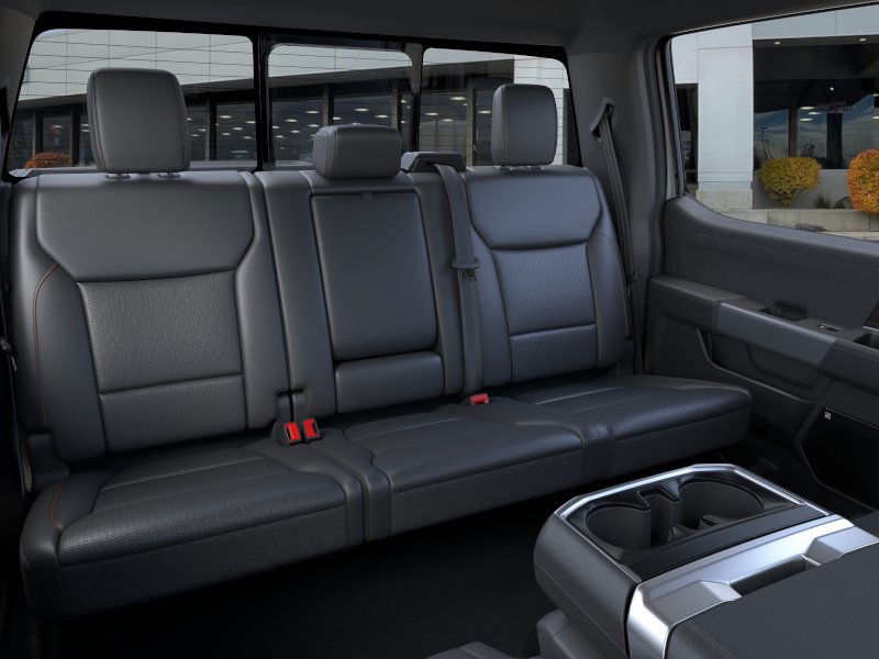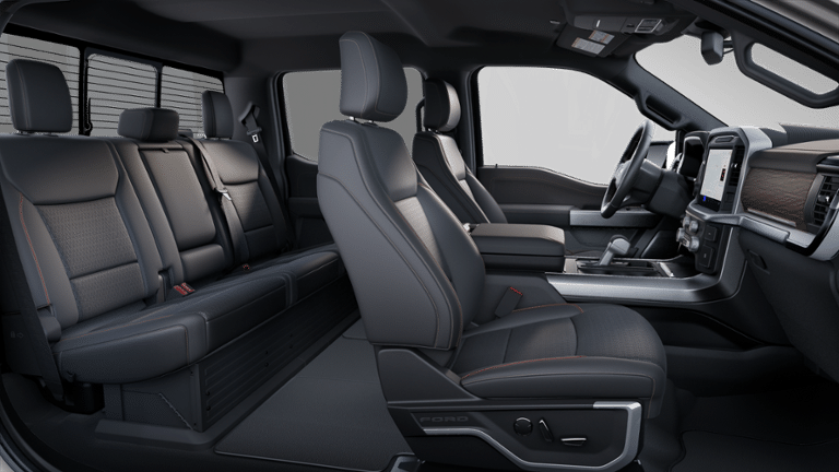 EQUIPMENT GROUP 502A HIGH Ambient Lighting - Ice Blue Color Only, Wheels: 20 Chrome-Like PVD, Radio: B&O Unleashed Sound System by Bang & Olufsen, HD Radio and 14 speakers including subwoofer, 2nd Row Heated Seats, Mobile Office Package, Wireless Charging, Partitioned Lockable Rear Storage, Console Worksurface, 6 Extended Angular Bright Anodized Step Bar, Power-Sliding Rear Window, Heads-Up Display, Illuminated Driver & Passenger Visors, covered mirrors, Tires: 275/60R20 All-Terrain, ENGINE: 3.5L POWERBOOST FULL-HYBRID V6 Pro Power Onboard 2.4KW and removes 36 gallon fuel tank, GVWR: 7,400 lbs Payload Package, Electronic Locking w/3.73 Axle Ratio. Ford LARIAT with Iconic Silver exterior and Black interior features a V6 Cylinder Engine with 430 HP at 6000 RPM*.