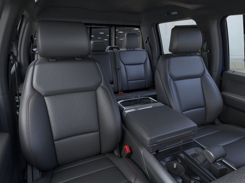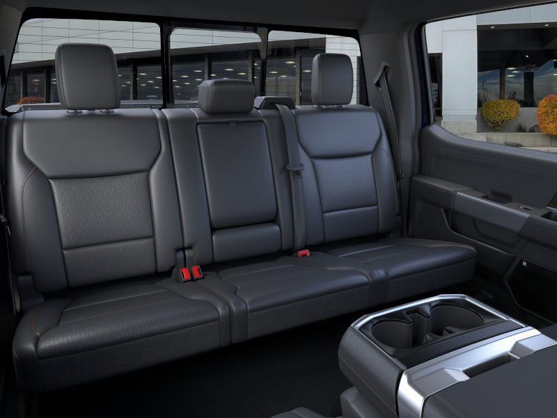 EQUIPMENT GROUP 502A HIGH Ambient Lighting - Ice Blue Color Only, Wheels: 20 Chrome-Like PVD, Radio: B&O Unleashed Sound System by Bang & Olufsen, HD Radio and 14 speakers including subwoofer, 2nd Row Heated Seats, Tires: 275/60R20 All-Terrain, Mobile Office Package, Wireless Charging, Partitioned Lockable Rear Storage, Console Worksurface, Power-Sliding Rear Window, 6 Angular Bright Anodized Step Bar, Heads-Up Display, Illuminated Driver & Passenger Visors, covered mirrors, ENGINE: 3.5L POWERBOOST FULL-HYBRID V6 Pro Power Onboard 2.4KW and removes 36 gallon fuel tank, GVWR: 7,400 lbs Payload Package, Electronic Locking w/3.73 Axle Ratio, TOUGH BED SPRAY-IN BEDLINER, POWER TELESCOPING/GLASS/FOLDING TRAILER TOW MIRRORS heat, turn signal, memory, auto-dimming feature (drivers side) and chrome skull caps, LED Sideview Mirror Spotlights, high-intensity LED security approach lamps. Ford LARIAT with Antimatter Blue exterior and Black interior features a V6 Cylinder Engine with 430 HP at 6000 RPM*.