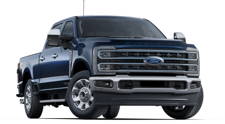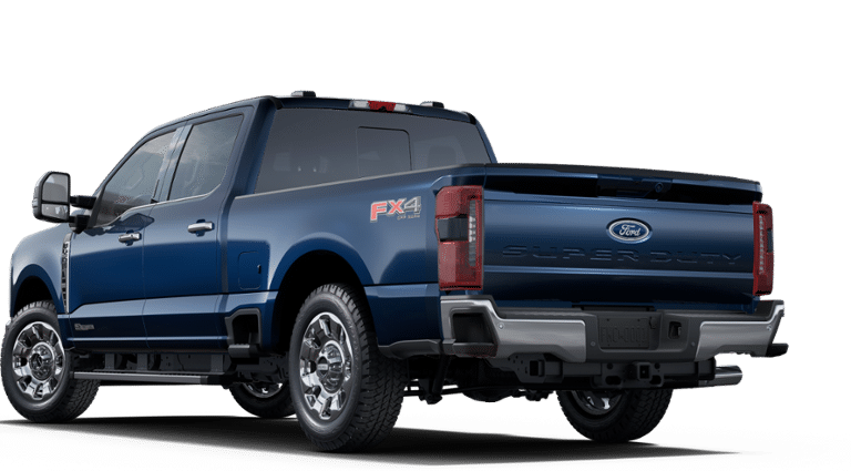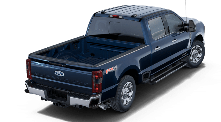 ENGINE: 6.7L 4V OHV POWER STROKE V8 TURBO DIESEL B20 manual push-button engine-exhaust braking and Operator Commanded Regeneration (OCR), 250 Amp Alternator, 34 Gallon Fuel Tank, 3.31 Axle Ratio, Dual AGM 68 AH Battery, CHROME PACKAGE Unique Chrome Mirror Caps, Tires: LT275/65Rx20E BSW Automatic Transmission, Spare may not be the same as road tire, Wheels: 20 Chrome PVD Aluminum, Chrome Door Handles, 6 Angular Bright Anodized Step Bars, Chrome Exhaust Tip, ELECTRONIC-LOCKING W/3.31 AXLE RATIO, TAILGATE STEP & HANDLE, TRANSMISSION: TORQSHIFT 10-SPEED AUTOMATIC SelectShift and selectable drive modes: normal, eco, slippery roads, tow/haul and off-road. Ford LARIAT with Antimatter Blue exterior and Black Onyx interior features a 8 Cylinder Engine with 475 HP at 2600 RPM*.