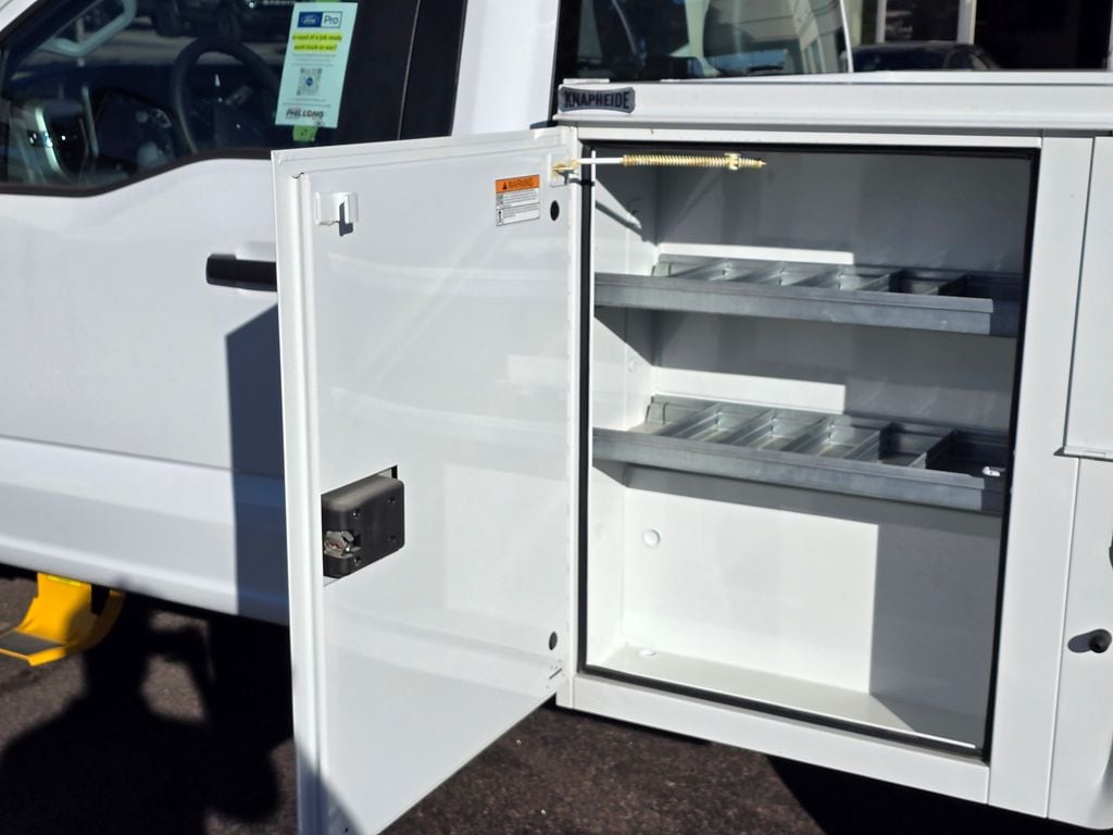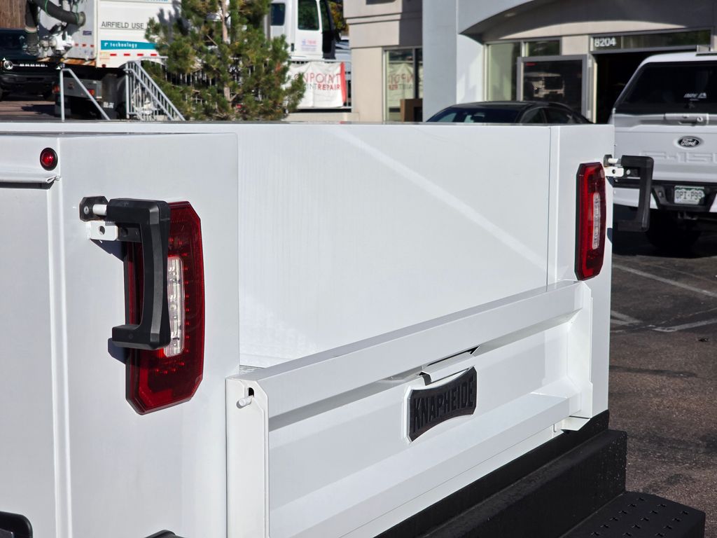 A professional-grade workhorse with this premium upfit from Knapheide. Featuring our durable 696-2-M service body with secure master locks and organized shelving, this vehicle is equipped for maximum productivity. The upgrade includes a robust Galva-Grip bumper, integrated strobe lights wired to the cab, a seamless OEM backup camera installation, and a versatile 7-way trailer plug.