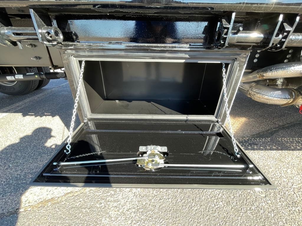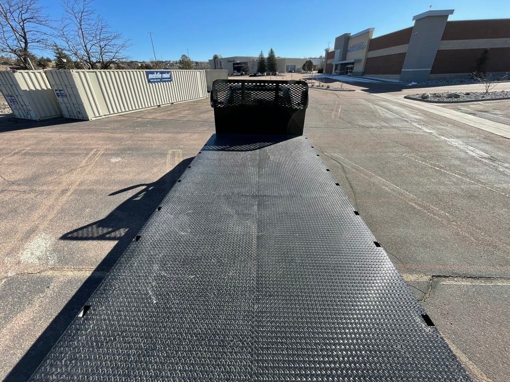 Scelzi 8'x20' flatbed with diamond plate floor decking. 2 x underbody toolboxes, sliding binder tracks. ICC bumper and hitch.