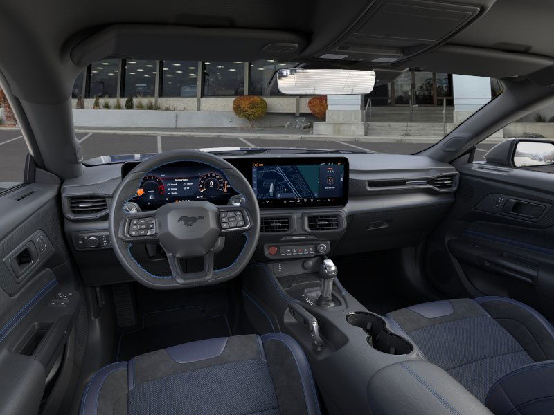 Dark Horse Appearance Package (Notorious Blue Painted Brake Calipers, Painted Black Roof, and Unique Hood Graphic), Equipment Group 700A Deluxe Package (Aluminum Foot Pedals, Approach Detection, Cloth/Vinyl Climate-Controlled Bucket Seats, Driver Seat & Mirrors Memory, and Universal Garage Door Opener (UGDO)), RECARO Sport Seats (RECARO Micro-Suede/Vinyl Bucket Seats), Security Package (Active Anti-Theft System, Locking Center Console, and Wheel Locking Kit), 12 Speakers, 4-Wheel Disc Brakes, ABS brakes, Adaptive suspension, Air Conditioning, Alloy wheels, AM/FM radio: SiriusXM with 360L, AM/FM Stereo, Auto High-beam Headlights, Auto-dimming Rear-View mirror, Automatic temperature control, B&O Sound System by Bang & Olufsen, Brake assist, Bumpers: body-color, Cloth/Vinyl Heated Bucket Seats, Compass, Delay-off headlights, Driver door bin, Driver vanity mirror, Dual front impact airbags, Dual front side impact airbags, Electronic Stability Control, Emergency communication system: 911 Assist, Exterior Parking Camera Rear, Four wheel independent suspension, Front anti-roll bar, Front Bucket Seats, Front Center Armrest, Front dual zone A/C, Front reading lights, Fully automatic headlights, HD Radio, Heated front seats, Heated steering wheel, Illuminated entry, Internet access capable: FordPass Connect, Knee airbag, Low tire pressure warning, Navigation system: Connected Navigation, Occupant sensing airbag, Outside temperature display, Overhead airbag, Overhead console, Panic alarm, Passenger door bin, Passenger vanity mirror, Power door mirrors, Power driver seat, Power passenger seat, Power steering, Power windows, Radio data system, Rain sensing wipers, Rear anti-roll bar, Rear Parking Sensors, Rear window defroster, Remote keyless entry, SiriusXM w/360L, Speed control, Speed-sensing steering, Speed-Sensitive Wipers, Split folding rear seat, Spoiler, Sport steering wheel, Steering wheel mounted audio controls, SYNC 4, Tachometer, Telescoping steering wheel, Tilt steering wheel, Traction control, Trip computer, Variably intermittent wipers, Voltmeter, and Wheels: 19" x 9.5" Fr & 19" x 10" Rr Aluminum. Price includes: $3500 - Retail Customer Cash. Exp. 03/31/2026