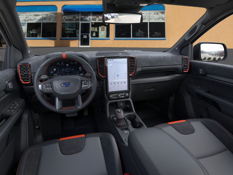 TOUGH BED SPRAY-IN BEDLINER, TRANSMISSION: ELECTRONIC 10-SPEED AUTOMATIC selectable drive modes: normal, sport, tow/haul, slippery, off-road, rock crawl and Baja (STD), ENGINE: 3.0L ECOBOOST V6 auto start-stop technology (STD). Ford Raptor with Desert Sand exterior and Ebony interior features a V6 Cylinder Engine with 405 HP at 5750 RPM*.