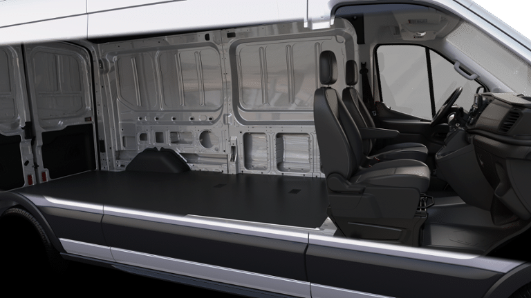 This upfitted Ford Transit van features a Master Rack shelving system for ultimate organization and an added bulkhead for safety. It's the perfect mobile workshop, designed to save you time and keep you productive on every job.