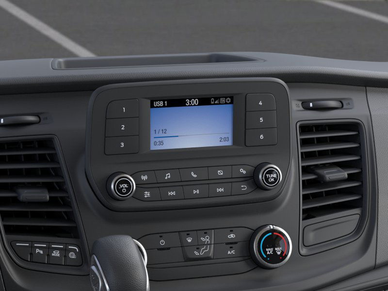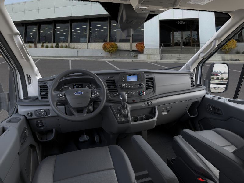 ENGINE: 3.5L ECOBOOST V6, HEAVY-DUTY TRAILER TOW PACKAGE Deletes rear tow hook, 4/7 pin connector assembly and rear jumper and relay system for backup/B+/running lights, This package does not include a Trailer Brake Controller (TBC) (67D), Frame Mounted Hitch Receiver, Tow/Haul Mode w/Trailering Wiring Provisions, REVERSE SENSING SYSTEM, DARK PALAZZO GRAY VINYL BUCKET SEATS W/ARMRESTS 2-way manual driver seat and 2-way manual passenger seat, TRANSMISSION: 10-SPD AUTOMATIC W/OD & SELECTSHIFT auxiliary transmission oil cooler (STD). Ford Transit Cargo Van with Oxford White exterior and Dark Palazzo Gray interior features a V6 Cylinder Engine with 310 HP at 5000 RPM*.