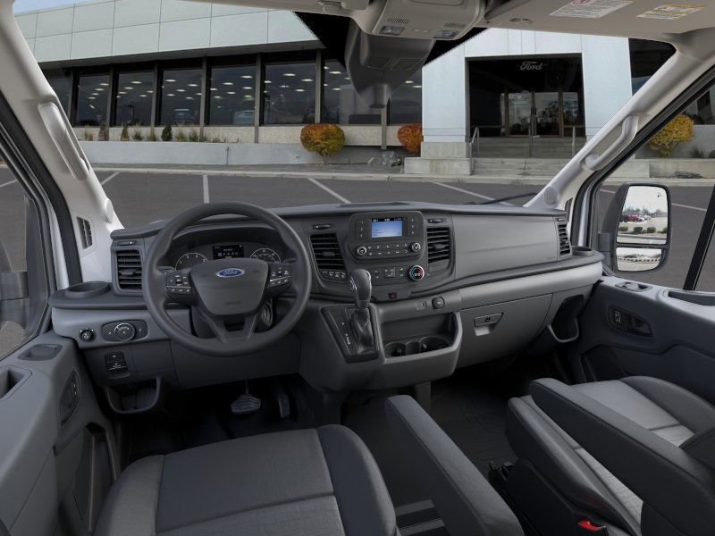 ENGINE: 3.5L ECOBOOST V6, REVERSE SENSING SYSTEM, RADIO: AM/FM STEREO W/SYNC 3 4.0 multi-function display, Bluetooth®, dual USB ports and 4 speakers (front), DARK PALAZZO GRAY VINYL BUCKET SEATS W/ARMRESTS 2-way manual driver seat and 2-way manual passenger seat, TRANSMISSION: 10-SPD AUTOMATIC W/OD & SELECTSHIFT auxiliary transmission oil cooler (STD). Ford Transit Cargo Van with Oxford White exterior and Dark Palazzo Gray interior features a V6 Cylinder Engine with 310 HP at 5000 RPM*.