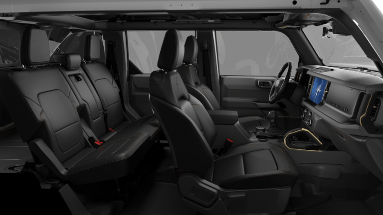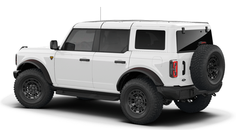 SASQUATCH PACKAGE Wheels: 17 Matte Black Alloy, High Clearance Suspension, 4.7 Final Drive Ratio, electronic-locking front and rear axle, Front Stabilizer Disconnect, Tires: LT315/70R17 Rugged-Terrain, Position-Sensitive Bilstein Shock Absorbers, ENGINE: 2.7L ECOBOOST V6 GVWR: 6,180 lbs, PAINTED HARD TOP Hard Top Sound Deadening Headliner, Rear-Window Defroster & Washer, TRANSMISSION: 10-SPEED AUTOMATIC trail control, trail turn assist and trail one-pedal driving, 4.46 Axle Ratio, EQUIPMENT GROUP 332A MID PACKAGE Rear Parking Sensors, Pro Power Onboard - 400W, Back side of center floor console, Dual Smart Charging USB Ports, Front Row Heated Seats, Dr & Pass Illuminated Sliding Visor Vanity Mirrors, Heated Steering Wheel, Dual-Zone Electronic Automatic Temperature Control, air conditioning, Ford Co-Pilot360, Auto High-Beam Headlamps, Pre-Collision Assist w/Automatic Emergency Braking, pedestrian detection, forward collision warning and dynamic brake support, Blind Spot Information System (BLIS), Cross-Traffic Alert, Rear View Camera, backup assist grid lines, Lane-Keeping System, Lane-Keeping Alert, Lane-Keeping Aid and Driver Alert, Connected Navigation, Ford connectivity package, pinch-to-zoom capability, live traffic, predictive destinations and route guidance, RAPTOR-STYLE RUNNING BOARD Replaces the standard rock rails, SIRIUSXM W/360L (3-YEAR PLAN) SiriusXM w/360L (3-year plan), also referred to as an extended service subscription plan by SiriusXM, is included w/your newly purchased or leased vehicle will stop at the end of your subscription period unless you decide to continue service, Plan is non-transferrable and non-refundable, If you do not wish to enjoy your subscription, you can cancel by calling the number below, All SiriusXM services require a subscription, each sold separately by SiriusXM after the service term, Service subject to the SiriusXM customer agreement and privacy policy, visit siriusxm.com for complete terms and how to cancel which includes online methods or calling 1-866-635-2349, Some services and features are subject to device capabilities and location availability, Satellite. Ford Badlands with Oxford White exterior and Black Onyx interior features a V6 Cylinder Engine with 315 HP at 5500 RPM*.