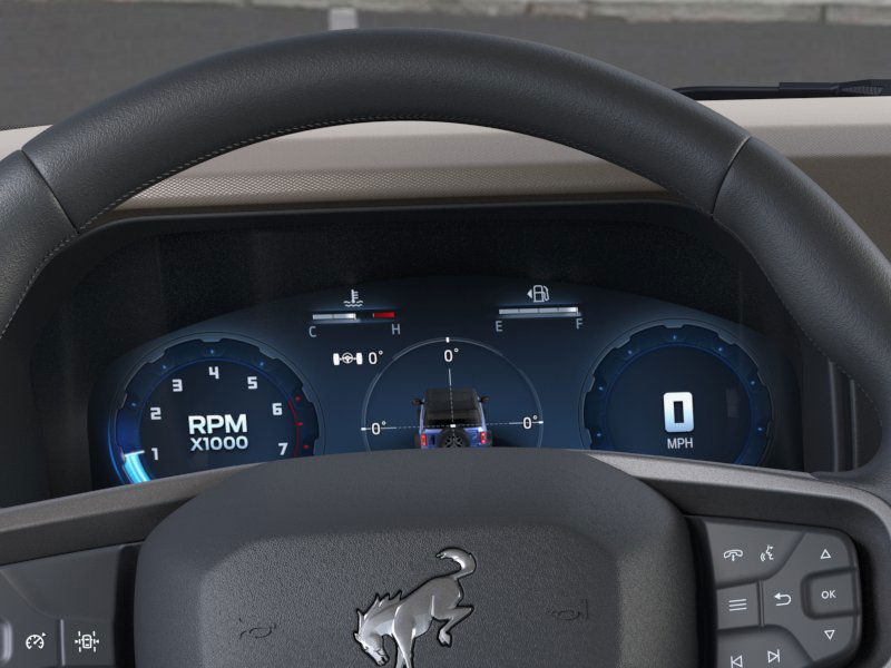 BLACK DIAMOND PACKAGE Advanced 4x4 w/automatic on demand engagement, front row interior grab handles - one in the center floor console passenger side, Rock Rails, Tires: LT265/70R17 All-Terrain, full size spare tire w/TPMS, 4.46 Final Drive Ratio w/Rear Locking Differential, Washout Capable Rubberized Flooring, drain plugs, Wheels: 17 Black High Gloss-Painted Steel, Powder Coated Steel Front & Rear Bumpers, Full Vehicle Steel Bash Plates, Auxiliary Switches, pre-run accessory wires located in overhead console w/front map lights, LED Fog Lamps, CARBONIZED GRAY MOLDED-IN-COLOR HARD TOP Rear-Window Defroster & Washer, TRANSMISSION: 10-SPEED AUTOMATIC trail control and trail turn assist, 3.73 Axle Ratio, EQUIPMENT GROUP 222A MID PACKAGE Rear Parking Sensors, Pro Power Onboard - 400W, Back side of center floor console, Dual Smart Charging USB Ports, Front Row Heated Seats, Dr & Pass Illuminated Sliding Visor Vanity Mirrors, Dual-Zone Electronic Automatic Temperature Control, air conditioning, Ford Co-Pilot360, Auto High-Beam Headlamps, Pre-Collision Assist w/Automatic Emergency Braking, pedestrian detection, forward collision warning and dynamic brake support, Blind Spot Information System (BLIS), Cross-Traffic Alert, Rear View Camera, backup assist grid lines, Lane-Keeping System, Lane-Keeping Alert, Lane-Keeping Aid and Driver Alert, Connected Navigation, Ford connectivity package, pinch-to-zoom capability, live traffic, predictive destinations and route guidance and One Box search, FRONT & REAR FLOOR LINERS W/O CARPET FLOOR MATS Custom accessory, pre-installed, Deletes carpet front floor mats. Ford Big Bend with Marsh Gray exterior and Smoked Truffle w/ Black Onyx interior features a 4 Cylinder Engine with 275 HP at 5700 RPM*.