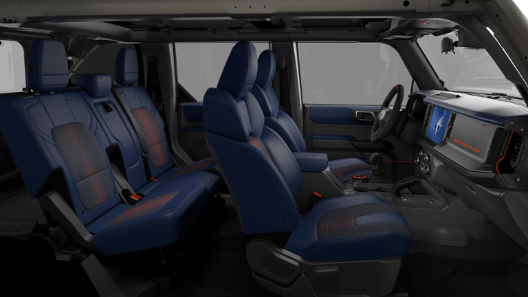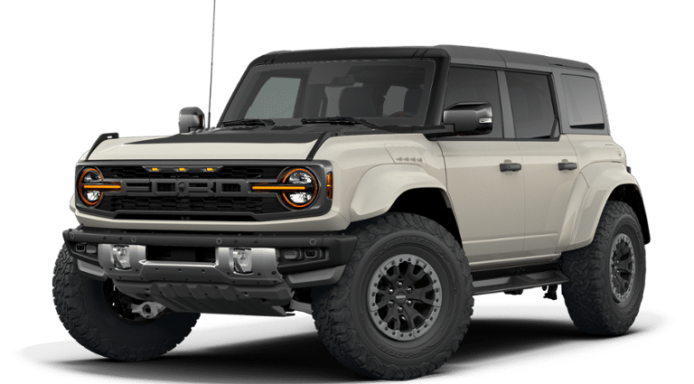 RAPTOR BLACK APPEARANCE PACKAGE unique hood matte black graphics package, Interior Carbon Fiber Pack, Shadow Black Painted Hard Top, Rear-Window Defroster & Washer, Hard Top Sound Deadening Headliner, Gloss Black Sideview Mirror Skull Caps, Wheels: 17 Dark Carbonized Gray Alloy Painted, Beadlock capable forged, SIRIUSXM W/360L (3-YEAR PLAN) SiriusXM w/360L (3-year plan), also referred to as an extended service subscription plan by SiriusXM, is included w/your newly purchased or leased vehicle will stop at the end of your subscription period unless you decide to continue service, Plan is non-transferrable and non-refundable, If you do not wish to enjoy your subscription, you can cancel by calling the number below, All SiriusXM services require a subscription, each sold separately by SiriusXM after the service term, Service subject to the SiriusXM customer agreement and privacy policy, visit siriusxm.com for complete terms and how to cancel which includes online methods or calling 1-866-635-2349, Some services and features are subject to device capabilities and location availability, Satellite, TRANSMISSION: 10-SPEED AUTOMATIC trail control, trail turn assist and trail one-pedal driving (STD), ENGINE: 3.0L ECOBOOST V6 (STD). Ford Raptor with Desert Sand exterior and Blue w/ Black Onyx interior features a V6 Cylinder Engine with 418 HP at 5750 RPM*.