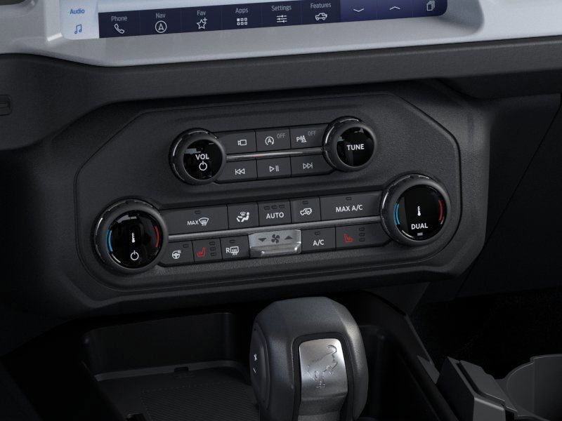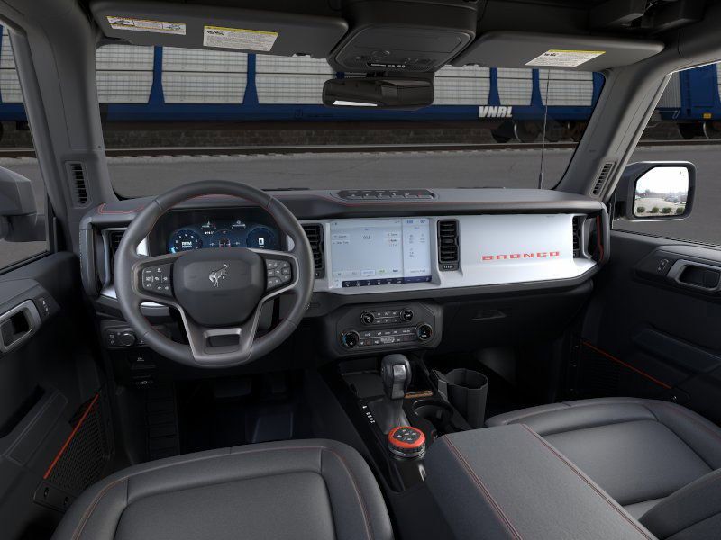 Equipment Group 564A Lux Package (Unique Vinyl Bucket Seats and Wheels: 17" Unique Matte Black-Painted Alloy), Ford Connectivity Package (1-Year Included), Ford Connectivity Package (one-Time Purchase - 7 Years), Ford Integrated Tether System (FITS) Accessory Package (Bronco-Branded Console Cupholder), 12 Speakers, 4-Wheel Disc Brakes, ABS brakes, Air Conditioning, Alloy wheels, AM/FM radio: SiriusXM with 360L, Auto High-beam Headlights, Auto-dimming Rear-View mirror, Automatic temperature control, Brake assist, Compass, Convertible HardTop, Convertible roof lining, Delay-off headlights, Driver door bin, Driver vanity mirror, Dual front impact airbags, Dual front side impact airbags, Electronic Stability Control, Emergency communication system: 911 Assist, Engine Block Heater, Exterior Parking Camera Rear, Front anti-roll bar, Front Bucket Seats, Front Center Armrest, Front dual zone A/C, Front License Plate Bracket, Front reading lights, Front Row Top Panels and Door Storage Bags, Front wheel independent suspension, Fully automatic headlights, Glass rear window, Heated door mirrors, Heated front seats, Heated steering wheel, Illuminated entry, Integrated roll-over protection, Leather Shift Knob, Low tire pressure warning, Navigation system: Connected Navigation, Occupant sensing airbag, Outside temperature display, Overhead airbag, Overhead console, Panic alarm, Passenger door bin, Passenger vanity mirror, Power door mirrors, Power steering, Power windows, Radio data system, Rear anti-roll bar, Rear window defroster, Rear window wiper, Remote keyless entry, Security system, SiriusXM with 360L, SiriusXM with 360L (3-Year Plan), Speed control, Split folding rear seat, Steering wheel mounted audio controls, SYNC 4, Tachometer, Telescoping steering wheel, Tilt steering wheel, Traction control, Trip computer, Turn signal indicator mirrors, Variably intermittent wipers, and Voltmeter.