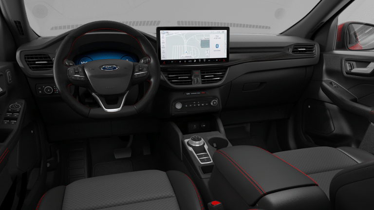 TECH PACK #2 360-Degree Camera w/Split View, Connected Navigation (1-Year Included), pinch-to-zoom capability, live traffic, predictive destinations and route guidance, Navigation service requires SYNC4 and 4G modem (optional on select vehicles), complimentary connect service and the Ford app (see Ford app terms for details), Customer receives a complimentary 1-year trial of navigation services when an eligible vehicle is added to members Ford app account, Trial period begins w/new vehicle warranty start date, At the end of the complimentary period, access to connected navigation services will be discontinued, B&O Sound System by Bang & Olufsen, 4 speakers including subwoofer, SYNC 4 w/Enhanced Voice Recognition, 13.2 LCD capacitive touch-screen w/swipe capability, wireless phone. Ford ST-Line Select with Rapid Red Metallic Tinted Clearcoat exterior and Ebony w/Red Stitching interior features a 4 Cylinder Engine with 192 HP at 6250 RPM*.