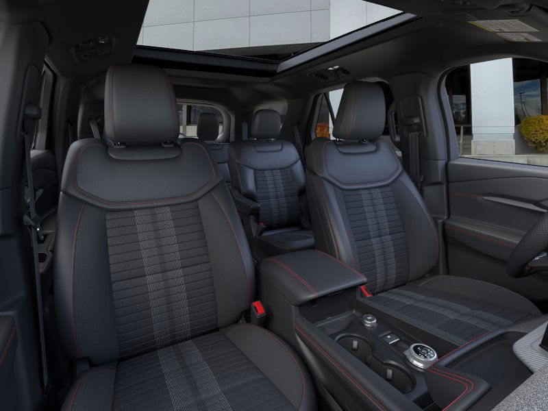 PANORAMIC FIXED GLASS ROOF W/POWER SHADE remote control front windows (opens front windows from outside of the vehicle via the key fob), ST-LINE STREET PACK Wheels: 21 Magnetite-Painted Aluminum, Tires: P275/45R21 AS BSW, Performance Brakes, Red Painted Perf Front & Rear Brake Calipers, PREMIUM PACKAGE 110V/150W AC Power Outlet, Replaces the powerpoint port on the rear side of the center floor console, Auto-Dimming Interior Rearview Mirror, Memory Drivers Seat, Manual-Folding Sideview Mirrors, power and heated glass, LED turn signal indicators, security approach lamps, drivers side auto-dimming and driver and passenger side memory, Rain-Sensing Wipers (Front Only), Ambient Lighting, 2nd Row Heated Seats, SECURICODE KEYLESS ENTRY KEYPAD, 18 SPARE WHEEL & JACK KIT 18 spare tire, FRONT & 2ND ROWS FLOOR LINERS W/CARPET FLOOR MATS front and 2nd rows black carpet floor mats, 2ND ROW CAPTAINS CHAIRS W/E-Z ENTRY & ARMREST E-Z Entry is manually activated, Replaces standard 2nd row 35/30/35 bench seats, TRANSMISSION: 10-SPEED AUTOMATIC (STD). Ford ST-Line with Marsh Gray exterior and Onyx interior features a 4 Cylinder Engine with 300 HP at 5500 RPM*.
