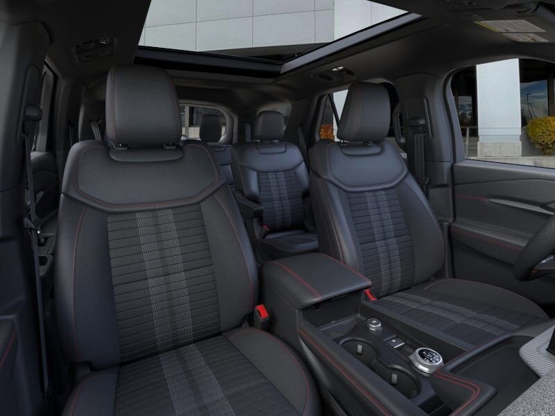 PANORAMIC FIXED GLASS ROOF W/POWER SHADE remote control front windows (opens front windows from outside of the vehicle via the key fob), SECURICODE KEYLESS ENTRY KEYPAD, 18 SPARE WHEEL & JACK KIT 18 spare tire, FRONT & 2ND ROWS FLOOR LINERS W/CARPET FLOOR MATS front and 2nd rows black carpet floor mats, 2ND ROW CAPTAINS CHAIRS W/E-Z ENTRY & ARMREST E-Z Entry is manually activated, Replaces standard 2nd row 35/30/35 bench seats, TRANSMISSION: 10-SPEED AUTOMATIC (STD). Ford ST-Line with Space White exterior and Onyx interior features a 4 Cylinder Engine with 300 HP at 5500 RPM*.
