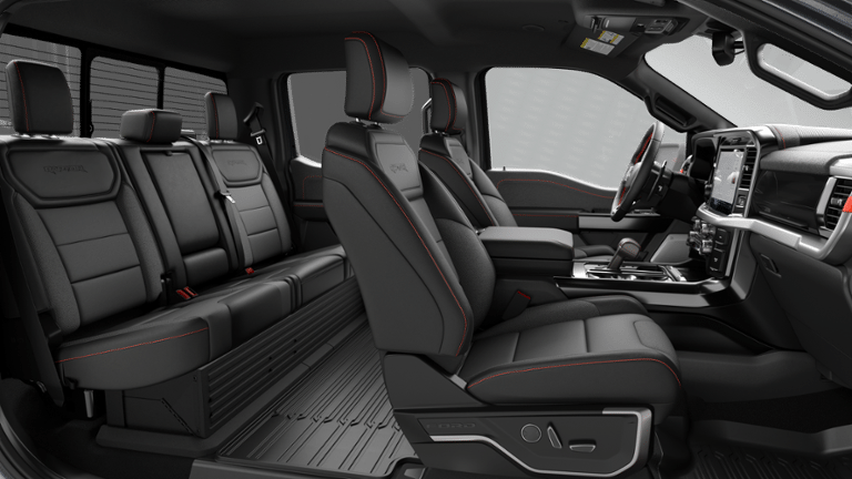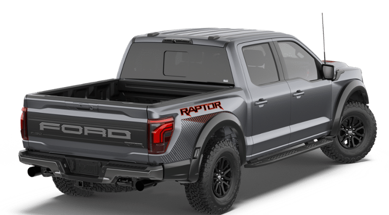 FORD CONNECTIVITY PACKAGE (1-TIME PURCHASE - 7 YEARS) unlimited Wi-Fi hotspot, audio and video streaming, connected navigation, voice assistant and entertainment, Select option for a 1-time purchase of Ford Connectivity Package, Ford Connectivity Package will be active for 7 years on this vehicle (non-transferable to another VIN) from warranty start date, Requires activation via Ford app, Not available for fleet orders, Evolving technology/cellular networks/vehicle capability may limit functionality and prevent operation of connected features, Ford may temporarily slow data speeds if such data usage reaches or exceeds 50GB within a billing cycle or due to network limitations, If a customer uses more than 50% of their data usage in a roaming country during a 60-day period, Ford may remove, TOUGH BED SPRAY-IN BEDLINER, DRIVERS SIDE SECURICODE KEYLESS-ENTRY KEYPAD, TRANSMISSION: ELECTRONIC 10-SPEED AUTOMATIC SelectShift w/paddle shifters and terrain management modes: normal, sport, tow-haul, slippery, rock crawl, off-road and baja (STD). Ford Raptor with Carbonized Gray exterior and Black interior features a V6 Cylinder Engine with 450 HP at 5250 RPM*.