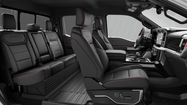 FORD CONNECTIVITY PACKAGE (1-TIME PURCHASE - 7 YEARS) unlimited Wi-Fi hotspot, audio and video streaming, connected navigation, voice assistant and entertainment, Select option for a 1-time purchase of Ford Connectivity Package, Ford Connectivity Package will be active for 7 years on this vehicle (non-transferable to another VIN) from warranty start date, Requires activation via Ford app, Not available for fleet orders, Evolving technology/cellular networks/vehicle capability may limit functionality and prevent operation of connected features, Ford may temporarily slow data speeds if such data usage reaches or exceeds 50GB within a billing cycle or due to network limitations, If a customer uses more than 50% of their data usage in a roaming country during a 60-day period, Ford may remove, TOUGH BED SPRAY-IN BEDLINER, DRIVERS SIDE SECURICODE KEYLESS-ENTRY KEYPAD, TRANSMISSION: ELECTRONIC 10-SPEED AUTOMATIC SelectShift w/paddle shifters and terrain management modes: normal, sport, tow-haul, slippery, rock crawl, off-road and baja (STD). Ford Raptor with Oxford White exterior and Black interior features a V6 Cylinder Engine with 450 HP at 5250 RPM*.