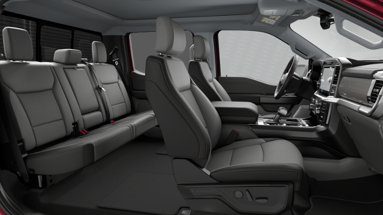 EQUIPMENT GROUP 501A MID Power-Adjustable Pedals w/Memory, Power-Sliding Rear Window, Illuminated Driver & Passenger Visors, covered mirrors, Wheels: 20 Chrome-Like PVD, 6 Angular Bright Anodized Step Bar, Tires: 275/60R20 All-Terrain, TOUGH BED SPRAY-IN BEDLINER, BLUECRUISE (EQUIPMENT + 1 YEAR + 90-DAY PLAN) See ford.com/bluecruise for version details, Note: Select option to purchase BlueCruise hardware and 1 year and 90 days of BlueCruise access at time of vehicle order, Without selecting this option, or the one-time purchase of BlueCruise by selecting (522) at time of vehicle order, vehicle will never be capable of BlueCruise functionality, After this initial duration, customers need to purchase a subscription to continue using BlueCruise, See subscription options and pricing on ford.com/bluecruise, DRIVERS SIDE SECURICODE KEYLESS-ENTRY KEYPAD, TRANSMISSION: ELECTRONIC 10-SPEED AUTOMATIC SelectShift w/progressive range select and selectable drive modes: normal, ECO, sport, tow/haul, slippery, deep snow/sand and mud/rut (STD), TWIN PANEL MOONROOF. Ford LARIAT with Ruby Red Metallic Tinted Clearcoat exterior and Medium Dark Slate interior features a V6 Cylinder Engine with 400 HP at 6000 RPM*.
