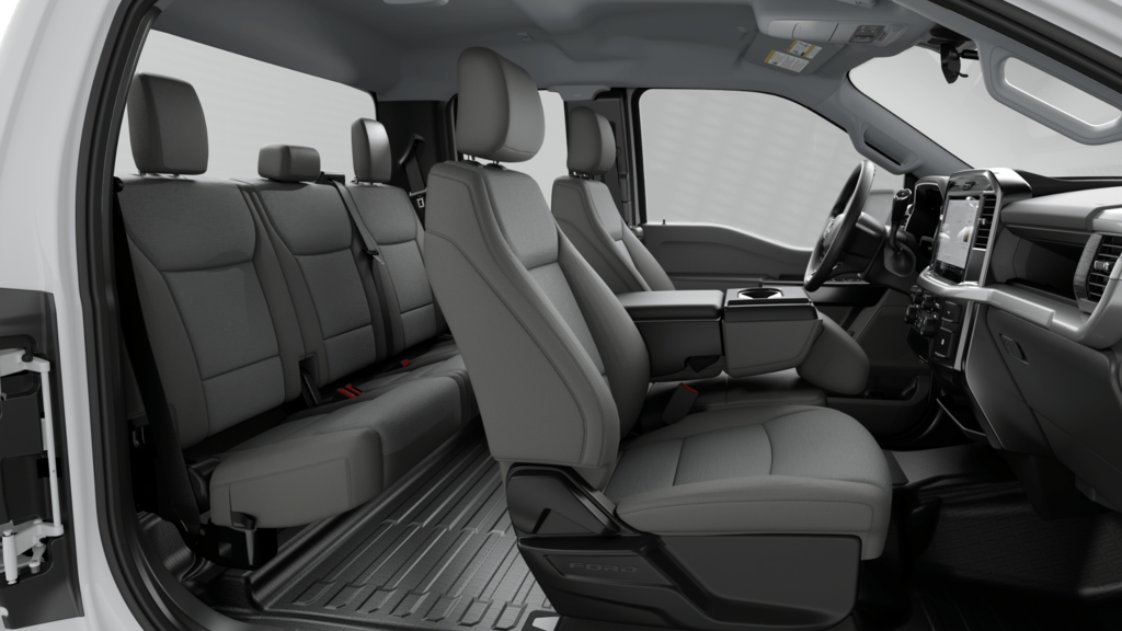 Equipment Group 101A Standard (Cloth 40/20/40 Front Seat, Radio: AM/FM Stereo with SiriusXM 360L, SYNC 4 with Enhanced Voice Recognition, and Wheels: 17" Silver Steel), Ford Connectivity Package (1-Year Included), GVWR: 6,550 lbs Payload Package, Internet access capable: 5G Modem - Ford Connectivity Package, 4WD, 4-Wheel Disc Brakes, 6 Speakers, ABS brakes, Air Conditioning, AM/FM radio: SiriusXM with 360L, Auto High-beam Headlights, Brake assist, Compass, Delay-off headlights, Driver door bin, Dual front impact airbags, Dual front side impact airbags, Electronic Stability Control, Emergency communication system: SYNC 4 911 Assist, Front anti-roll bar, Front Center Armrest, Front License Plate Bracket, Front reading lights, Front wheel independent suspension, Fully automatic headlights, Heated door mirrors, Illuminated entry, Integrated Trailer Brake Controller, Low tire pressure warning, Occupant sensing airbag, Outside temperature display, Overhead airbag, Overhead console, Panic alarm, Passenger door bin, Passenger vanity mirror, Power door mirrors, Power steering, Power windows, Radio data system, Rear Parking Sensors, Rear step bumper, Remote keyless entry, Security system, Speed control, Split folding rear seat, Steering wheel mounted audio controls, Tachometer, Telescoping steering wheel, Tilt steering wheel, Tough Bed Spray-in Bedliner, Traction control, Trip computer, and Variably intermittent wipers.