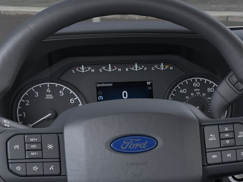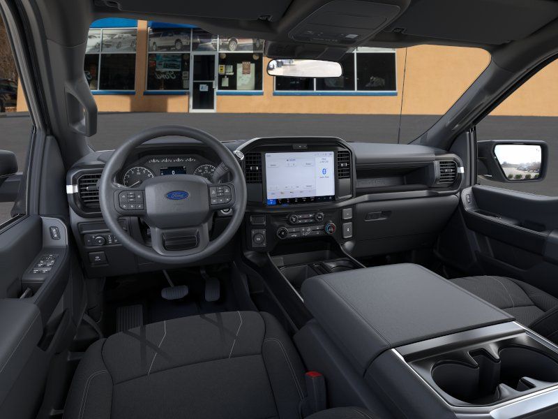 F-150 LOBO PACKAGE ride height lowered shocks (rear), Painted Grille, Two-Speed Auto 4WD w/Neutral Towing Capability, Electronic Locking w/3.73 Axle Ratio, Wheels: 22 Aluminum, Tires: 22, Lower Body Ground Effects, Signature Lighting, Dual Exhaust w/Black Tips, ENGINE: 5.0L V8 auto start-stop technology, GVWR: 7,100 lbs Payload Package, 3.31 Axle Ratio, 50-State Emissions, Standard equipment on 2.7L (99P) and 5.0L V8 (995), Automatically added to 3.5L Ecoboost (998) and 3.5L PowerBoost full hybrid (99D) orders from dealers located in the following California emissions states: California, Massachusetts, New York, Oregon, Pennsylvania, Vermont and Washington, Available 3.5L Ecoboost (998) and 3.5L PowerBoost full hybrid (99D) option for dealers in federal states for all order types (retail / stock / fleet): Arizona, Connecticut, Delaware, Idaho, Maine, Maryland, Montana, New Hampshire, New Jersey, Nevada, Ohio, Rhode Island and West Virginia, Available option for dealers located in all states for retail orders, Available option for dealers located, EQUIPMENT GROUP 200A MID 12 Cluster Display, Wheels: 20 Dark Gray Aluminum, Tires: 275/60R20 All-Terrain, LED Fog Lamps w/LED Cornering Lamp, TOUGH BED SPRAY-IN BEDLINER, TRANSMISSION: ELECTRONIC 10-SPEED AUTOMATIC SelectShift w/progressive range select and selectable drive modes: normal, ECO, sport, tow/haul, slippery, deep snow/sand and mud/rut (STD). Ford STX with Carbonized Gray exterior and Black interior features a 8 Cylinder Engine with 400 HP at 6000 RPM*.