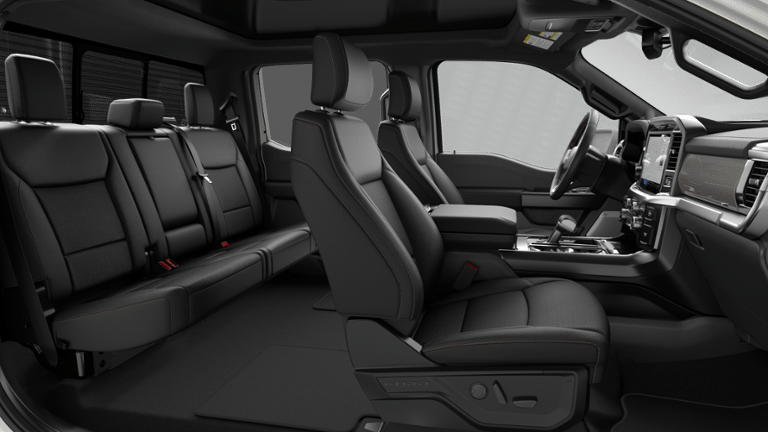 Equipment Group 501A Mid (ActiveX Trimmed Bucket Seats, Illuminated Driver and Passenger Visors, Power-Adjustable Pedals with Memory, Power-Sliding Rear Window, Radio: B&O Sound System by Bang and Olufsen, SYNC 4 with Enhanced Voice Recognition, and Wheels: 20" Chrome-Like PVD), Ford Connectivity Package (1-Year Included), FX4 Off-Road Package (4x4 FX4 Off-Road Bodyside Decal, Hill Descent Control, Monotube Rear Shocks, Off-Road Tuned Front Shock Absorbers, and Tray Style Floor Liner Without Carpet Mats), Internet access capable: 5G Modem - Ford Connectivity Package, Mobile Office Package (Console Worksurface, Partitioned Lockable Rear Storage, and Wireless Charging), Tow/Haul Package (Integrated Trailer Brake Controller), 3.5L PowerBoost Full-Hybrid V6, 4WD, 4-Wheel Disc Brakes, 8 Speakers, ABS brakes, Air Conditioning, Alloy wheels, AM/FM radio: SiriusXM with 360L, Auto High-beam Headlights, Auto-dimming door mirrors, Auto-dimming Rear-View mirror, Automatic temperature control, BlueCruise (equipment + 1 Year + 90-Day Plan), Brake assist, Bumpers: chrome, Chrome wheels, Compass, Delay-off headlights, Driver door bin, Driver vanity mirror, Driver's Side SecuriCode Keyless-Entry Keypad, Dual front impact airbags, Dual front side impact airbags, Electronic Stability Control, Emergency communication system: SYNC 4 911 Assist, Front anti-roll bar, Front Bucket Seats, Front Center Armrest, Front dual zone A/C, Front fog lights, Front License Plate Bracket, Front reading lights, Front wheel independent suspension, Fully automatic headlights, Garage door transmitter, Heated door mirrors, Heated front seats, Heated steering wheel, Illuminated entry, Low tire pressure warning, Memory seat, Navigation system: Connected Navigation, Occupant sensing airbag, Outside temperature display, Overhead airbag, Overhead console, Panic alarm, Passenger door bin, Passenger vanity mirror, Power door mirrors, Power driver seat, Power passenger seat, Power steering, Power windows, Radio data system, Rain sensing wipers, Rear reading lights, Rear seat center armrest, Rear step bumper, Rear window defroster, Remote keyless entry, Security system, SiriusXM with 360L (3-Year Plan), Speed control, Split folding rear seat, Steering wheel mounted audio controls, Tachometer, Telescoping steering wheel, Tilt steering wheel, Tough Bed Spray-in Bedliner, Traction control, Trip computer, Turn signal indicator mirrors, Twin Panel Moonroof, Variably intermittent wipers, Ventilated front seats, and Wheels: 18" Chrome-Like PVD.