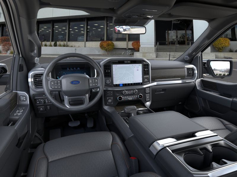 EQUIPMENT GROUP 501A MID Power-Adjustable Pedals w/Memory, Power-Sliding Rear Window, Illuminated Driver & Passenger Visors, covered mirrors, Wheels: 20 Chrome-Like PVD, 6 Angular Bright Anodized Step Bar, Tires: 275/60R20 All-Terrain, ENGINE: 3.5L POWERBOOST FULL-HYBRID V6 Pro Power Onboard 2.4KW and removes 36 gallon fuel tank, GVWR: 7,400 lbs Payload Package, Electronic Locking w/3.73 Axle Ratio, TOUGH BED SPRAY-IN BEDLINER, BLUECRUISE (EQUIPMENT + 1 YEAR + 90-DAY PLAN) See ford.com/bluecruise for version details, Note: Select option to purchase BlueCruise hardware and 1 year and 90 days of BlueCruise access at time of vehicle order, Without selecting this option, or the one-time purchase of BlueCruise by selecting (522) at time of vehicle order, vehicle will never be capable of BlueCruise functionality, After this initial duration, customers need to purchase a subscription to continue using BlueCruise, See subscription options and pricing on ford.com/bluecruise, DRIVERS SIDE SECURICODE KEYLESS-ENTRY KEYPAD, TWIN PANEL MOONROOF. Ford LARIAT with Star White Metallic Tri-Coat exterior and Black interior features a V6 Cylinder Engine with 430 HP at 6000 RPM*.