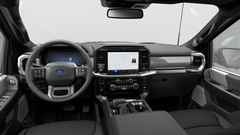EQUIPMENT GROUP 501A MID Power-Adjustable Pedals w/Memory, Power-Sliding Rear Window, Illuminated Driver & Passenger Visors, covered mirrors, Wheels: 20 Chrome-Like PVD, 6 Angular Bright Anodized Step Bar, Tires: 275/60R20 All-Terrain, TOUGH BED SPRAY-IN BEDLINER, BLUECRUISE (EQUIPMENT + 1 YEAR + 90-DAY PLAN) See ford.com/bluecruise for version details, Note: Select option to purchase BlueCruise hardware and 1 year and 90 days of BlueCruise access at time of vehicle order, Without selecting this option, or the one-time purchase of BlueCruise by selecting (522) at time of vehicle order, vehicle will never be capable of BlueCruise functionality, After this initial duration, customers need to purchase a subscription to continue using BlueCruise, See subscription options and pricing on ford.com/bluecruise, ELECTRONIC LOCKING W/3.55 AXLE RATIO, DRIVERS SIDE SECURICODE KEYLESS-ENTRY KEYPAD, TRANSMISSION: ELECTRONIC 10-SPEED AUTOMATIC SelectShift w/progressive range select and selectable drive modes: normal, ECO, sport, tow/haul, slippery, deep snow/sand and mud/rut (STD). Ford LARIAT with Iconic Silver exterior and Black interior features a V6 Cylinder Engine with 400 HP at 6000 RPM*.