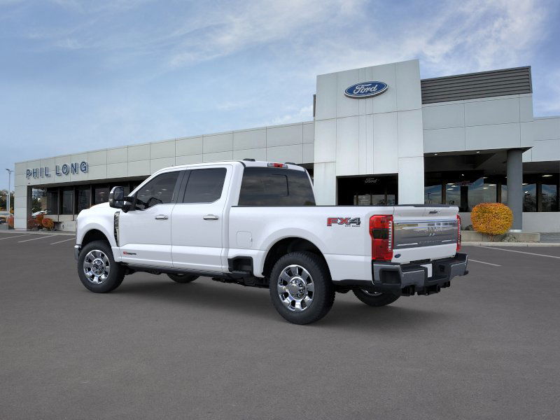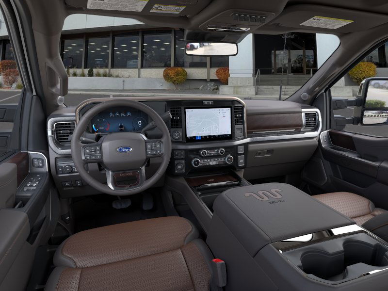 Chrome Package, Ford Connectivity Package (1-Year Included), FX4 Off-Road Package (Hill Descent Control, Off-Road Specifically Tuned Shock Absorbers, and Unique FX4 Off-Road Box Decal), GVWR: F-250 >10K Package, High Capacity 11.6" Axle Upgrade Package, Internet access capable: 5G Modem - Ford Connectivity Package, Order Code 700A (Flow-Through Console, Radio: B&O Unleashed Sound System by Bang & Olufsen, SiriusXM with 360L, SYNC 4 with Enhanced Voice Recognition, Unique King Ranch Leather 40/Console/40 Seats, and Wheels: 20" Bright Machined Aluminum), 4WD, 14 Speakers, 4-Wheel Disc Brakes, 410 Amp Dual Alternators, ABS brakes, Adjustable pedals, Air Conditioning, All-Weather Floor Mats, Alloy wheels, AM/FM radio: SiriusXM with 360L, Auto High-beam Headlights, Auto tilt-away steering wheel, Auto-dimming Rear-View mirror, Automatic temperature control, Brake assist, Compass, Delay-off headlights, Driver door bin, Driver vanity mirror, Dual front impact airbags, Dual front side impact airbags, Electronic Stability Control, Emergency communication system: SYNC 4 911 Assist, Engine Block Heater, Front anti-roll bar, Front Bucket Seats, Front Center Armrest, Front dual zone A/C, Front fog lights, Front reading lights, Fully automatic headlights, Garage door transmitter, Heads-Up Display, Heated door mirrors, Heated front seats, Heated rear seats, Heated steering wheel, Illuminated entry, Leather steering wheel, LED Roof Clearance Lights, Low tire pressure warning, Memory seat, Navigation system: Connected Navigation, Outside temperature display, Overhead airbag, Overhead console, Panic alarm, Passenger door bin, Passenger vanity mirror, Pedal memory, Power door mirrors, Power driver seat, Power passenger seat, Power steering, Power windows, Rain sensing wipers, Rapid-Heat Supplemental Cab Heater, Rear reading lights, Rear seat center armrest, Rear step bumper, Rear window defroster, Remote keyless entry, SecuriCode Keyless Entry Keypad (driver's Side), Security system, Speed control, Split folding rear seat, Steering wheel memory, Steering wheel mounted A/C controls, Steering wheel mounted audio controls, Tachometer, Telescoping steering wheel, Tilt steering wheel, Traction control, Trip computer, Turn signal indicator mirrors, Twin Panel Power Moonroof, Upfitter Switches (6), Variably intermittent wipers, and Ventilated front seats.