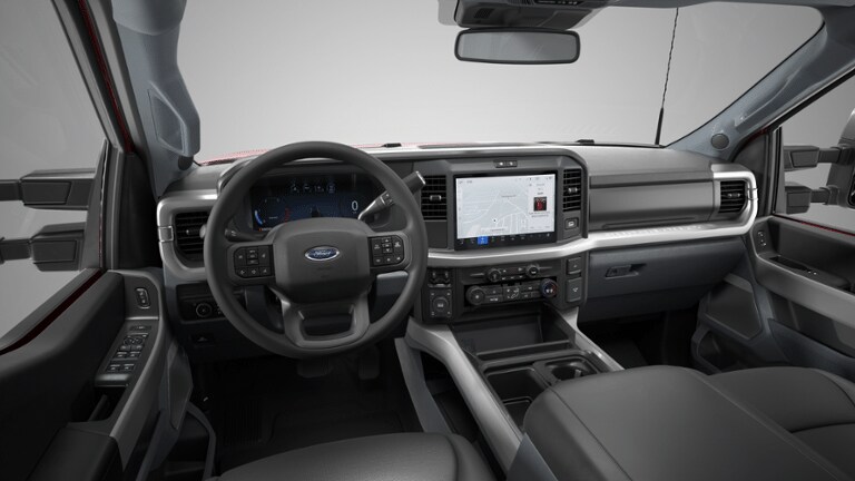 ENGINE: 6.7L 4V OHV POWER STROKE V8 TURBO DIESEL B20 manual push-button engine-exhaust braking and Operator Commanded Regeneration (OCR), 34 Gallon Fuel Tank, 3.31 Axle Ratio, Dual AGM 68 AH Battery, XLT PREMIUM PACKAGE Electrochromic Self-Dimming Rearview Mirror, PowerScope Trailer Tow Mirrors w/Heat, power-folding w/Autofold, telescoping, power glass, turn signal, high intensity LED security approach lamps and utility lighting system (LED side-mirror spotlights), SiriusXM w/360L (3-Year Plan), Also referred to as an extended service subscription plan by SiriusXM, is included w/your newly purchased or leased vehicle will stop at the end of the subscription period unless you decide to continue service, Plan is non-transferable and non-refundable, If you do not wish to enjoy your subscription, you can cancel by calling the number below, All SiriusXM services require a subscription, each sold separately by SiriusXM after the service term, Service subject to the SiriusXM customer, BLACK APPEARANCE PACKAGE front and rear black Ford ovals, box side decal (4x4, FX4 or Tremor), Rear Wheel Well Liners (Pre-Installed), Black Painted Front Grille Surround, Tough Bed Spray-In Bedliner, tailgate-guard, black box bed tie-down hooks and black bed attachment bolts, Body Color Front & Rear Bumpers, Wheels: 20 Ebony Black High Gloss, Black premium painted aluminum, gloss black hub cover/center ornament, Tires: LT275/65Rx20E BSW Automatic Transmission, Spare may not be the same as road tire, 6 Ebony Black Angular Running Boards, ELECTRONIC-LOCKING W/3.31 AXLE RATIO, TAILGATE STEP & HANDLE, TRANSMISSION: TORQSHIFT 10-SPEED AUTOMATIC SelectShift and selectable drive modes: normal, eco, slippery roads, tow/haul and off-road. Ford XLT with Ruby Red Metallic Tinted Clearcoat exterior and Medium Dark Slate interior features a 8 Cylinder Engine with 475 HP at 2600 RPM*.