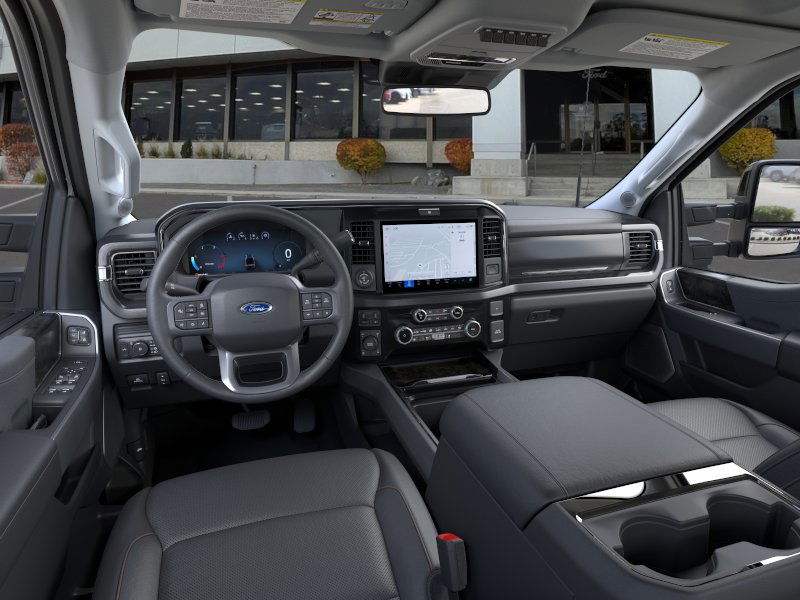 Black Appearance Package (6" Ebony Black Angular Running Boards, Black Painted Front Grille Surround, Body Color Front & Rear Bumpers, Ebony Black Painted Mirror Caps, Rear Wheel Well Liners (Pre-Installed), Tough Bed Spray-In Bedliner, and Wheels: 20" Ebony Black High Gloss), F-250 >10K GVWR Package, Ford Connectivity Package (1-Year Included), High Capacity 11.6" Axle Upgrade Package, Internet access capable: 5G Modem - Ford Connectivity Package, Lariat Premium Package (Lane Departure Warning System, Power-Sliding Rear-Window w/Defrost, Privacy Glass, Pro Trailer Backup Assist, and Pro Trailer Hitch Assist), Lariat Ultimate Package (4-Way Adjustable Headrests, Head-Up Display, Power-Deployable Running Boards, Radio: B&O Unleashed Sound System by Bang & Olufsen, SiriusXM w/360L, SYNC 4 w/Enhanced Voice Recognition, and Tailgate Step & Handle), Order Code 608A, 4WD, 4-Wheel Disc Brakes, 410 Amp Dual Alternators, 8 Speakers, ABS brakes, Adaptive Cruise Control w/Stop-and-Go, Adjustable pedals, Air Conditioning, Alloy wheels, AM/FM radio: SiriusXM with 360L, Auto High-beam Headlights, Auto-dimming Rear-View mirror, Automatic High Beam, Automatic temperature control, BLIS w/Cross-Traffic Alert, Brake assist, Bumpers: chrome, Compass, Delay-off headlights, Driver door bin, Driver vanity mirror, Dual AGM 68 AH Battery, Dual front impact airbags, Dual front side impact airbags, Electronic Stability Control, Emergency communication system: SYNC 4 911 Assist, Engine Block Heater, Flow-Through Console, Front & Rear Parking Sensors, Front ActiveX Trimmed 40/Console/40 Seats, Front anti-roll bar, Front Bucket Seats, Front Center Armrest, Front dual zone A/C, Front fog lights, Front License Plate Bracket, Front reading lights, Fully automatic headlights, Garage door transmitter, Heated door mirrors, Heated front seats, Heated rear seats, Heated steering wheel, Illuminated entry, Lane-Keeping System, Low tire pressure warning, Memory seat, Navigation system: Connected Navigation, Outside temperature display, Overhead airbag, Overhead console, Panic alarm, Passenger door bin, Passenger vanity mirror, Pedal memory, Post-Collision Braking, Power door mirrors, Power driver seat, Power passenger seat, Power steering, Power windows, Pre-Collision Assist, Radio: B&O Sound System by Bang & Olufsen, Rain sensing wipers, Rear Parking Sensors, Rear reading lights, Rear seat center armrest, Rear step bumper, Rear window defroster, Remote keyless entry, SecuriCode Keyless Entry Keypad (Driver's Side), Security system, Speed control, Split folding rear seat, Steering wheel mounted audio controls, Tachometer, Telescoping steering wheel, Tilt steering wheel, Traction control, Trip computer, Turn signal indicator mirrors, Twin Panel Power Moonroof, Upfitter Switches (6), Variably intermittent wipers, Vehicle Integration System 2.0, Ventilated front seats, and Wheels: 18" Bright Machined & Carbonized Gray Alum.