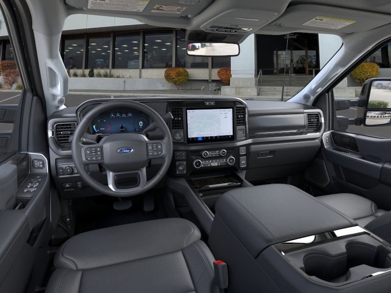 ENGINE: 6.7L HIGH OUTPUT POWER STROKE V8 DIESEL Turbo diesel B20, manual push-button engine-exhaust braking and Operator Commanded Regeneration (OCR), 250 Amp Alternator, 34 Gallon Fuel Tank, 3.31 Axle Ratio, High Capacity 11.6 Axle Upgrade Package, increased GCW and upgraded 11.6 axle, Note: Salespersons portfolio or trailer towing guide should be consulted for specific trailer towing or camper limits and corresponding required equipment, axle ratios and model availability, See supplemental reference for vehicle height consideration, Dual AGM 68 AH Battery, BLACK APPEARANCE PACKAGE front and rear black Ford ovals, box side decal (4x4, FX4 or Tremor) and ebony black fender vent surround dark fender badge, Rear Wheel Well Liners (Pre-Installed), Black Painted Front Grille Surround, Ebony Black Painted Mirror Caps, Tough Bed Spray-In Bedliner, tailgate-guard, black box bed tie-down hooks and black bed attachment bolts, Body Color Front & Rear Bumpers, Wheels: 20 Ebony Black High Gloss, Black premium painted aluminum, gloss black hub cover/center ornament, Tires: LT275/65Rx20E BSW Automatic Transmission, Spare may not be the same as road tire, 6 Ebony Black Angular Running Boards, LARIAT ULTIMATE PACKAGE Tailgate Step & Handle, Head-Up Display, 4-Way Adjustable Headrests, Power-Deployable Running Boards, Radio: B&O Unleashed Sound System by Bang & Olufsen, HD Radio w/14 speakers including subwoofer, LARIAT PREMIUM PACKAGE Pro Trailer Hitch Assist, Ford Co-Pilot 360 Assist 2.0, 360-degree camera, rear view camera and reverse brake assist, Pre-Collision Assist, Automatic Emergency Braking (AEB), pedestrian detection, forward collision warning, dynamic brake support and intersection assist, Post-Collision Braking, Lane-Keeping System, lane-keeping alert, lane-keeping aid and driver alert, Front & Rear Parking Sensors, Automatic High Beam, Adaptive Cruise Control w/Stop-and-Go, lane centering and predictive speed assist, Power-Sliding Rear-Window w/Defrost, Pro Trailer Backup Assist, trailer reverse guidance, Lane Departure Warning, TWIN PANEL POWER MOONROOF map lights and moonroof switches, MAX RECLINE SEATS 10-way power driver and 8-way power passenger and 4-way headrests, SECURICODE KEYLESS ENTRY KEYPAD (DRIVERS SIDE) Integrated into the B-pillar, ELECTRONIC-LOCKING W/3.31 AXLE RATIO, TRANSMISSION: TORQSHIFT 10-SPEED AUTOMATIC SelectShift and selectable drive modes: normal, eco, slippery roads, tow/haul and off-road. Ford LARIAT with Carbonized Gray exterior and Black Onyx interior features a 8 Cylinder Engine with 500 HP at 2600 RPM*.
