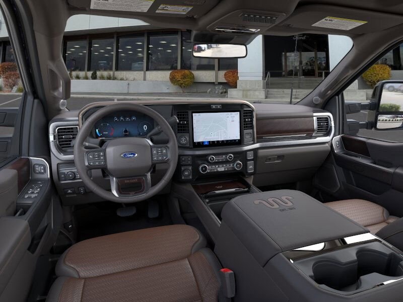 ENGINE: 6.7L HIGH OUTPUT POWER STROKE V8 DIESEL Turbo diesel B20, manual push-button engine-exhaust braking and Operator Commanded Regeneration (OCR), 34 Gallon Fuel Tank, 3.31 Axle Ratio, High Capacity 11.6 Axle Upgrade Package, increased GCW and upgraded 11.6 axle, Note: Salespersons portfolio or trailer towing guide should be consulted for specific trailer towing or camper limits and corresponding required equipment, axle ratios and model availability, See supplemental reference for vehicle height consideration, Dual 68 AH AGM 750 CCA Batteries, TWIN PANEL POWER MOONROOF map lights and moonroof switches, TOUGH BED SPRAY-IN BEDLINER tailgate-guard, black box bed tie-down hooks and black bed attachment bolts, MAX RECLINE SEATS 10-way power driver and 8-way power passenger and 4-way headrests, SECURICODE KEYLESS ENTRY KEYPAD (DRIVERS SIDE) Integrated into the B-pillar, ELECTRONIC-LOCKING W/3.31 AXLE RATIO, TRANSMISSION: TORQSHIFT 10-SPEED AUTOMATIC SelectShift and selectable drive modes: normal, eco, slippery roads, tow/haul and off-road. Ford King Ranch with Ruby Red Metallic Tinted Clearcoat/Marsh Gray exterior and Java interior features a 8 Cylinder Engine with 500 HP at 2600 RPM*.