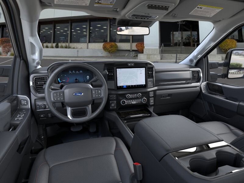 ENGINE: 6.7L HIGH OUTPUT POWER STROKE V8 DIESEL Turbo diesel B20, manual push-button engine-exhaust braking and Operator Commanded Regeneration (OCR), 48 Gallon Fuel Tank, 250 Amp Alternator, 3.31 Axle Ratio, High Capacity 11.6 Axle Upgrade Package, increased GCW and upgraded 11.6 axle, Note: Salespersons portfolio or trailer towing guide should be consulted for specific trailer towing or camper limits and corresponding required equipment, axle ratios and model availability, See supplemental reference for vehicle height consideration, Dual AGM 68 AH Battery, BLACK APPEARANCE PACKAGE front and rear black Ford ovals, box side decal (4x4, FX4 or Tremor) and ebony black fender vent surround dark fender badge, Rear Wheel Well Liners, Black Painted Front Grille Surround, Ebony Black Painted Mirror Caps, Tough Bed Spray-In Bedliner, tailgate-guard, black box bed tie-down hooks and black bed attachment bolts, Body Color Front & Rear Bumpers, Wheels: 20 Ebony Black High Gloss, Black premium painted aluminum, gloss black hub cover/center ornament, Tires: LT275/65Rx20E BSW Automatic Transmission, Spare may not be the same as road tire, 6 Ebony Black Angular Running Boards, LARIAT PREMIUM PACKAGE lane departure warning, Pro Trailer Hitch Assist, Ford Co-Pilot 360 Assist 2.0, rear view camera and reverse brake assist, Pre-Collision Assist, Automatic Emergency Braking (AEB), pedestrian detection, forward collision warning, dynamic brake support and intersection assist, Post-Collision Braking, Lane-Keeping System, lane-keeping alert, lane-keeping aid and driver alert, Front & Rear Parking Sensors, Automatic High Beam, Adaptive Cruise Control w/Stop-and-Go, lane centering and predictive speed assist, Power-Sliding Rear-Window w/Defrost, Pro Trailer Backup Assist, trailer reverse guidance, SECURICODE KEYLESS ENTRY KEYPAD (DRIVERS SIDE) Integrated into the B-pillar, ELECTRONIC-LOCKING W/3.31 AXLE RATIO, TAILGATE STEP & HANDLE, TRANSMISSION: TORQSHIFT 10-SPEED AUTOMATIC SelectShift and selectable drive modes: normal, eco, slippery roads, tow/haul and off-road. Ford LARIAT with Glacier Gray Metallic Tri-Coat exterior and Black Onyx interior features a 8 Cylinder Engine with 500 HP at 2600 RPM*.