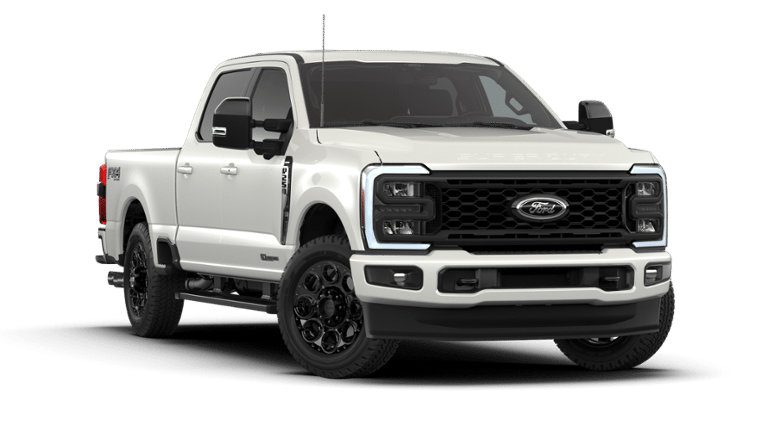 ENGINE: 6.7L 4V OHV POWER STROKE V8 TURBO DIESEL B20 manual push-button engine-exhaust braking and Operator Commanded Regeneration (OCR), 250 Amp Alternator, 34 Gallon Fuel Tank, 3.31 Axle Ratio, Dual AGM 68 AH Battery, BLACK APPEARANCE PACKAGE front and rear black Ford ovals, box side decal (4x4, FX4 or Tremor) and ebony black fender vent surround dark fender badge, Rear Wheel Well Liners (Pre-Installed), Black Painted Front Grille Surround, Ebony Black Painted Mirror Caps, Tough Bed Spray-In Bedliner, tailgate-guard, black box bed tie-down hooks and black bed attachment bolts, Body Color Front & Rear Bumpers, Wheels: 20 Ebony Black High Gloss, Black premium painted aluminum, gloss black hub cover/center ornament, Tires: LT275/65Rx20E BSW Automatic Transmission, Spare may not be the same as road tire, 6 Ebony Black Angular Running Boards, TWIN PANEL POWER MOONROOF map lights and moonroof switches, SECURICODE KEYLESS ENTRY KEYPAD (DRIVERS SIDE) Integrated into the B-pillar, ELECTRONIC-LOCKING W/3.55 AXLE RATIO, TAILGATE STEP & HANDLE, TRANSMISSION: TORQSHIFT 10-SPEED AUTOMATIC SelectShift and selectable drive modes: normal, eco, slippery roads, tow/haul and off-road. Ford LARIAT with Star White Metallic Tri-Coat exterior and Black Onyx interior features a 8 Cylinder Engine with 475 HP at 2600 RPM*.