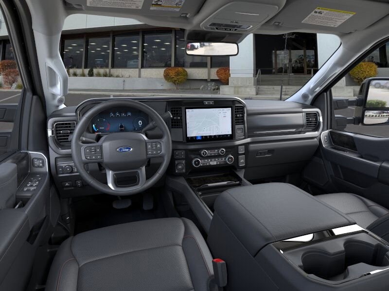 ENGINE: 6.7L HIGH OUTPUT POWER STROKE V8 DIESEL Turbo diesel B20, manual push-button engine-exhaust braking and Operator Commanded Regeneration (OCR), 250 Amp Alternator, 34 Gallon Fuel Tank, 3.31 Axle Ratio, High Capacity 11.6 Axle Upgrade Package, increased GCW and upgraded 11.6 axle, Note: Salespersons portfolio or trailer towing guide should be consulted for specific trailer towing or camper limits and corresponding required equipment, axle ratios and model availability, See supplemental reference for vehicle height consideration, Dual AGM 68 AH Battery, BLACK APPEARANCE PACKAGE front and rear black Ford ovals, box side decal (4x4, FX4 or Tremor) and ebony black fender vent surround dark fender badge, Rear Wheel Well Liners (Pre-Installed), Black Painted Front Grille Surround, Ebony Black Painted Mirror Caps, Tough Bed Spray-In Bedliner, tailgate-guard, black box bed tie-down hooks and black bed attachment bolts, Body Color Front & Rear Bumpers, Wheels: 20 Ebony Black High Gloss, Black premium painted aluminum, gloss black hub cover/center ornament, Tires: LT275/65Rx20E BSW Automatic Transmission, Spare may not be the same as road tire, 6 Ebony Black Angular Running Boards, SECURICODE KEYLESS ENTRY KEYPAD (DRIVERS SIDE) Integrated into the B-pillar, ELECTRONIC-LOCKING W/3.31 AXLE RATIO, TRANSMISSION: TORQSHIFT 10-SPEED AUTOMATIC SelectShift and selectable drive modes: normal, eco, slippery roads, tow/haul and off-road. Ford LARIAT with Argon Blue exterior and Black Onyx interior features a 8 Cylinder Engine with 500 HP at 2600 RPM*.